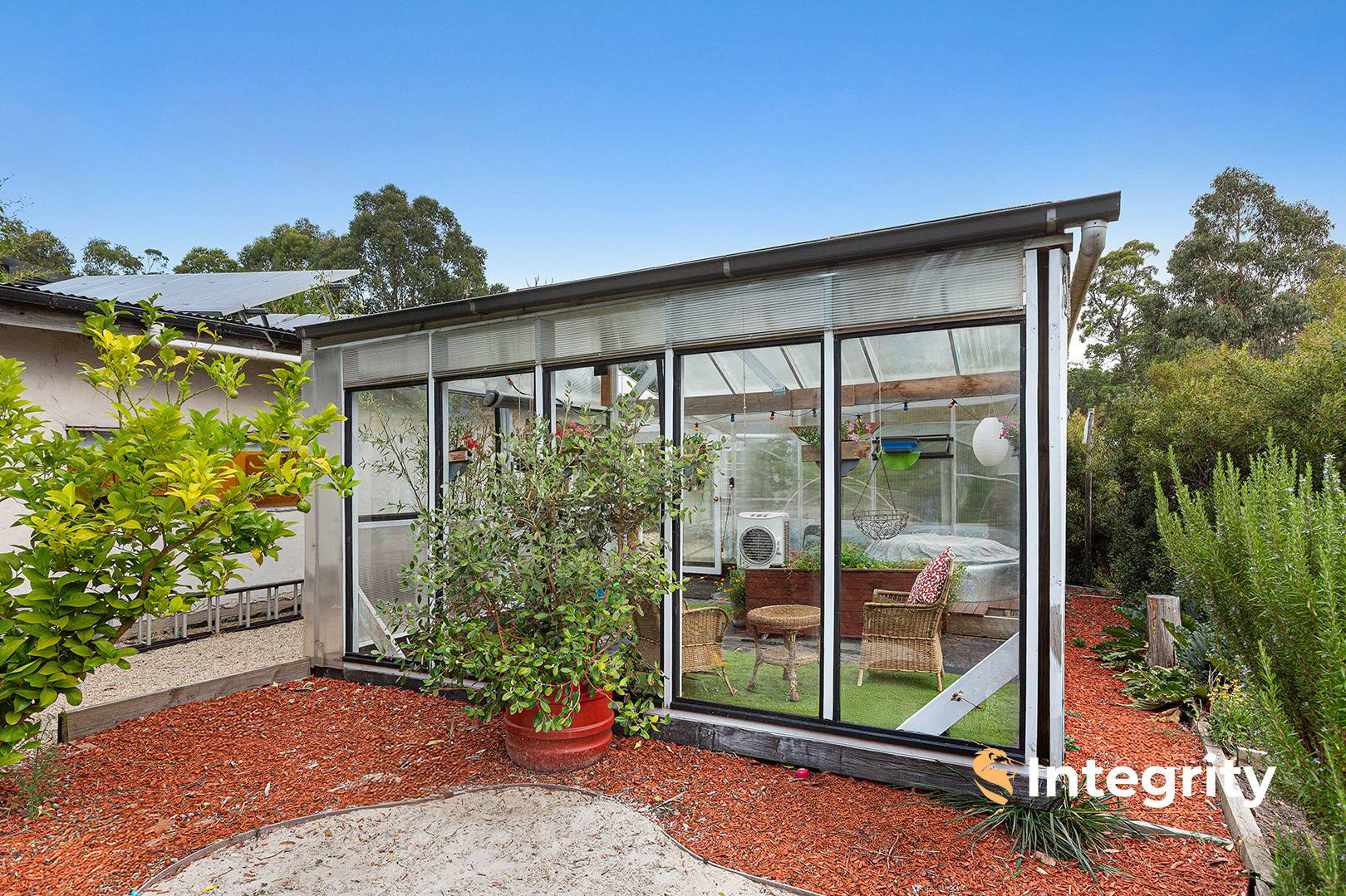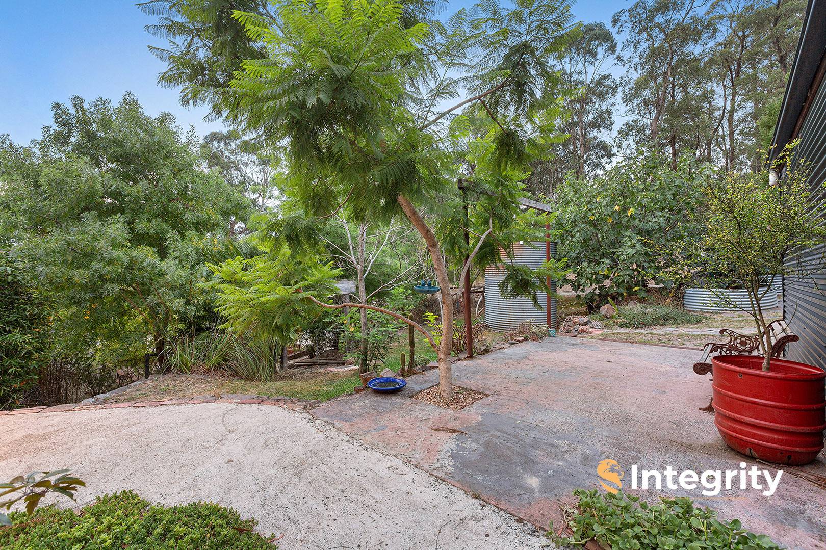 Outside, the property truly shines. A workshop with power and a roller door is perfect for DIY projects or storage. The circular driveway leads to a greenhouse with a spa. With a mix of cleared and bushland, there's privacy and natural beauty at every turn. A thriving vegetable garden and over 50,000L of water storage capacity (across 6 tanks) ensures sustainability. A charming pond and a wood shed complete the outdoor living experience.