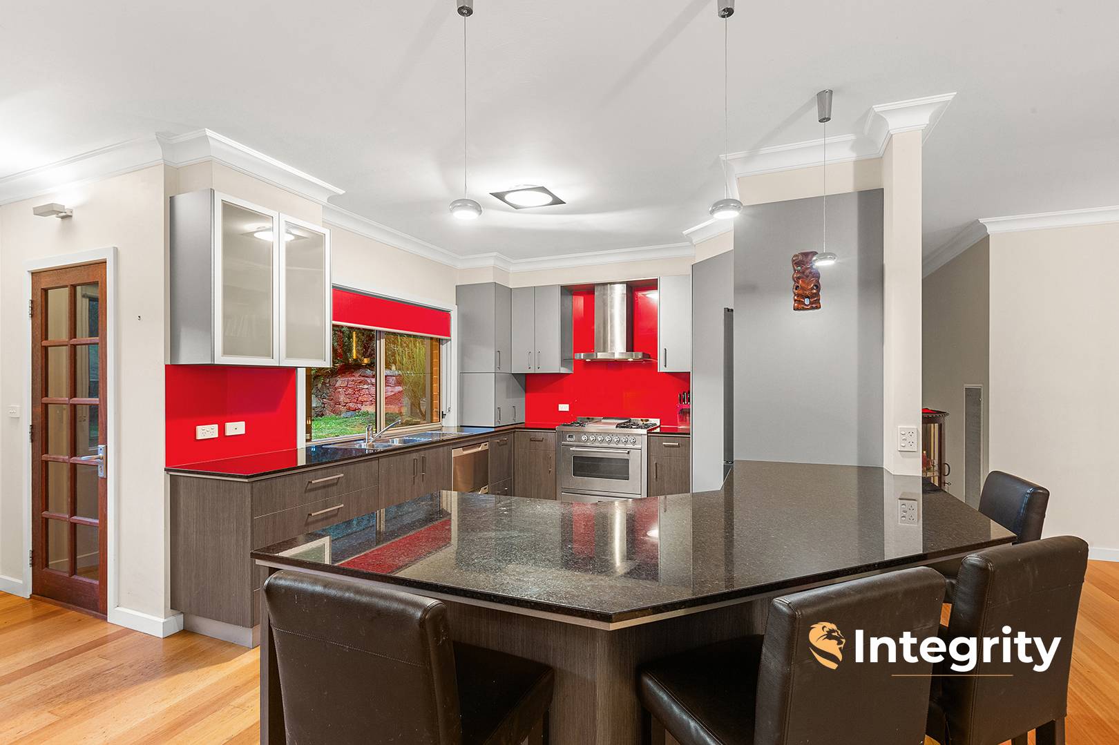 The heart of the home is the kitchen, showcasing granite benchtops, an Ilve 900mm oven, a walk-in pantry, and soft-closing drawers. The main bathroom is spacious, offering a full-size bath, a 1-meter shower, and a separate toilet. Large laundry with ample storage space.
