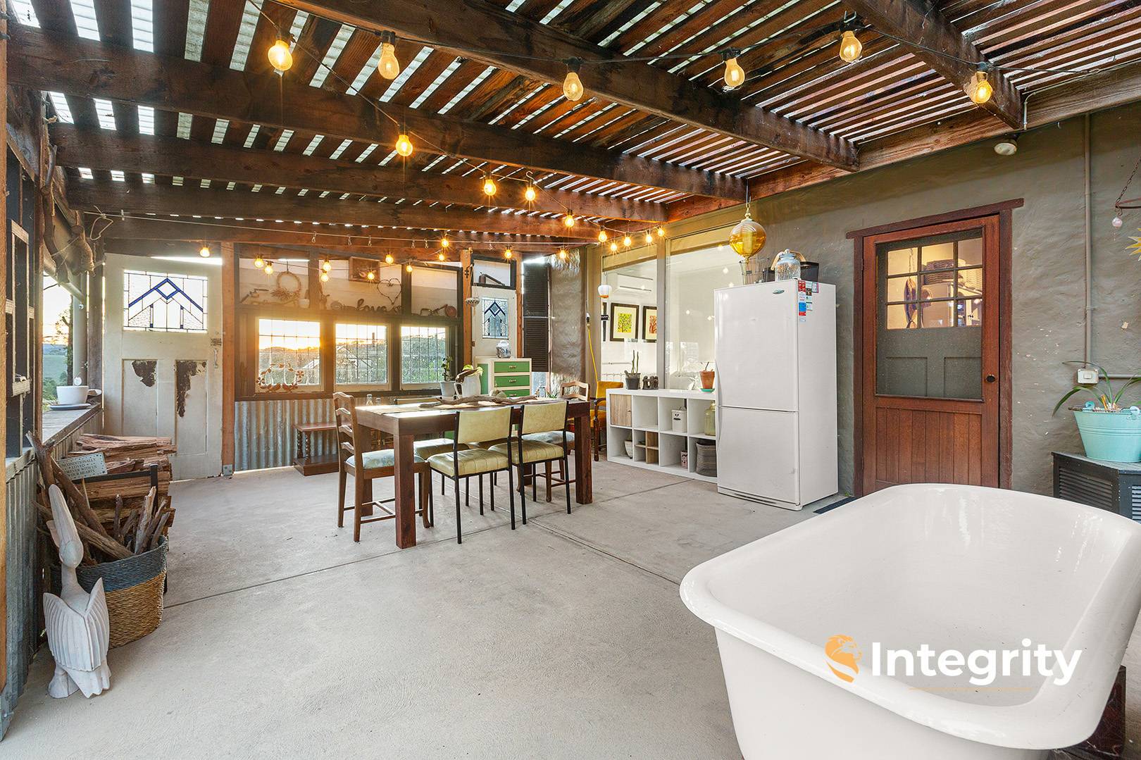 Externally, the property has 3 acres cleared with 7 acres sparse bushland, walking trails galore and a massive dam for watering animals. The property enjoys open views over farmland. There is a detached pergola as well as covered entertaining alfresco with outdoor bath – perfect for Airbnb.