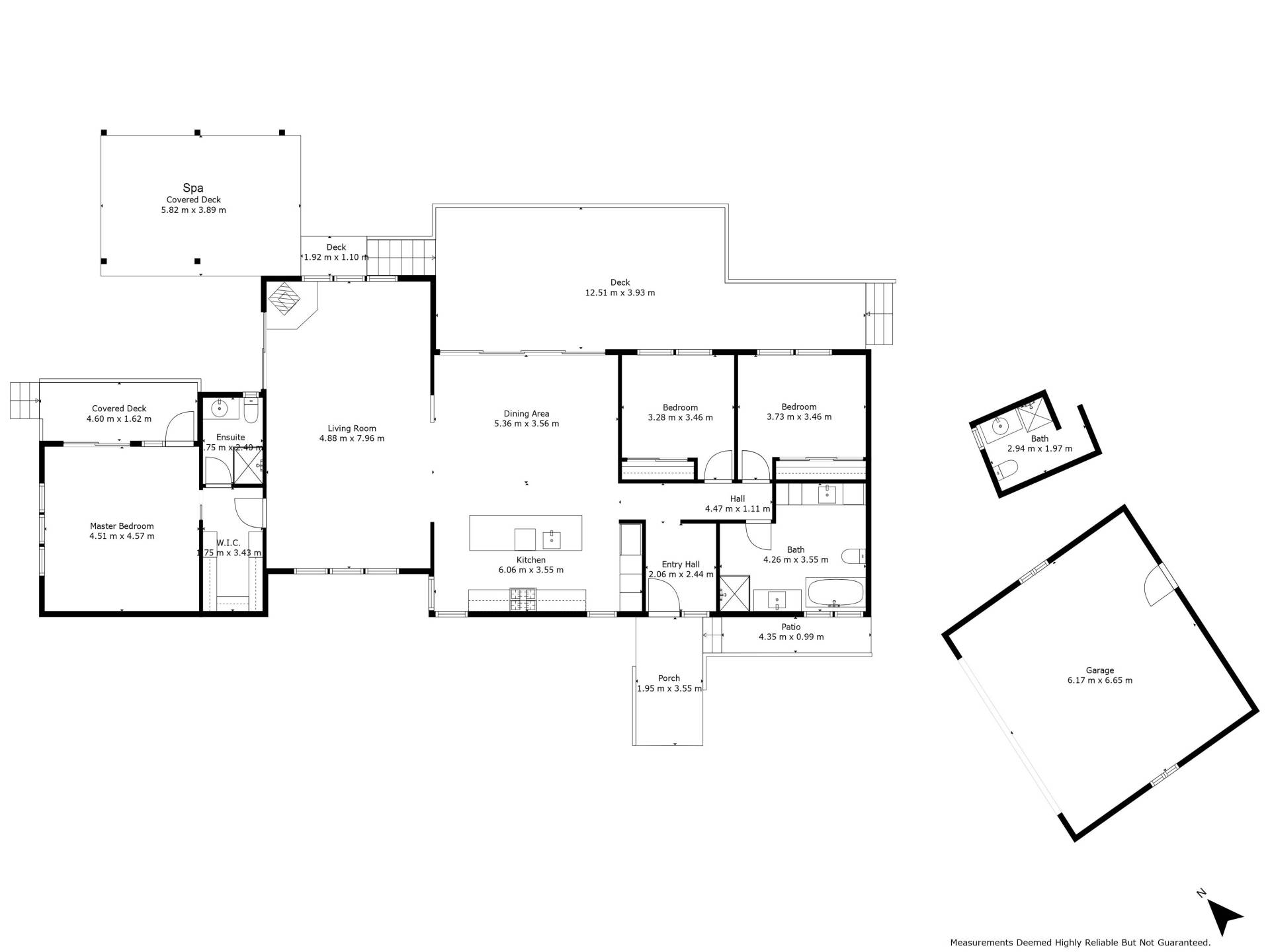 Step outside onto the large outdoor deck, perfect for relaxing or entertaining guests. An additional deck extends to the spa area, providing a tranquil space to unwind. The scillion roof adds a contemporary touch to the home's overall design, creating a warm and inviting atmosphere.