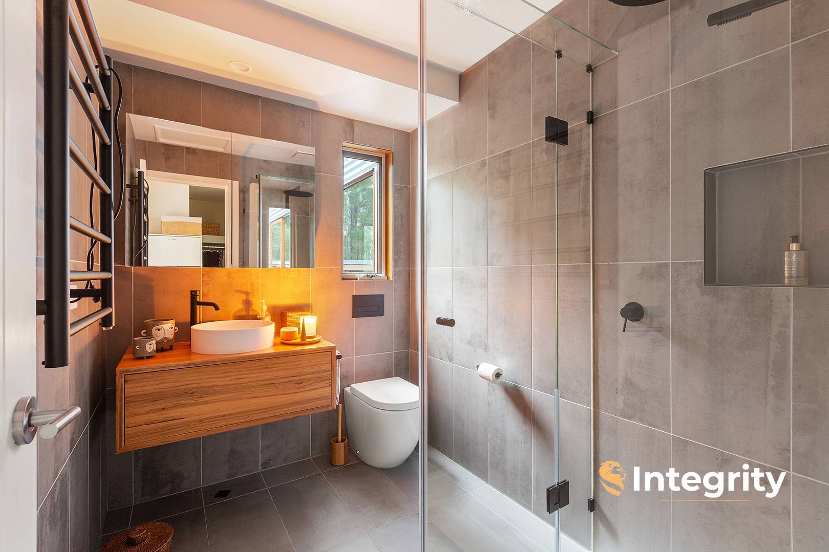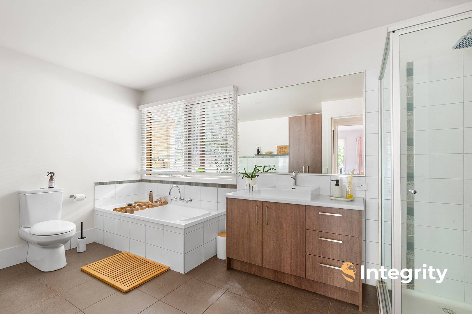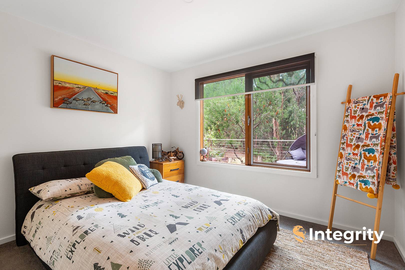 The en suite boasts a 900mm shower, a timber vanity, and a separate toilet, with a private balcony off the master that provides stunning views of the surrounding landscape.