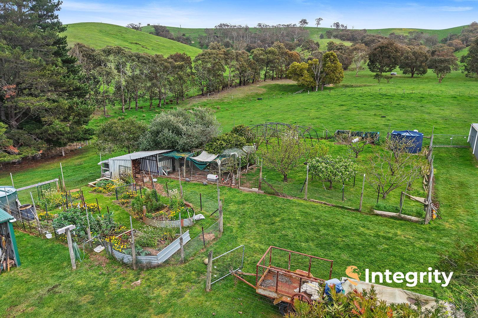 There is vast shedding, consisting of 6 m x 6 m double carport, machinery, garden and hay sheds all 6 m x 6 m, open farm shed of 10 m x 5 m and a wood shed. There is also a substantial chicken coop and fenced veggie garden with established fruit trees: apple, pear, plum, peach, quince, apricot, nectarine, lime, lemon, orange and olive!