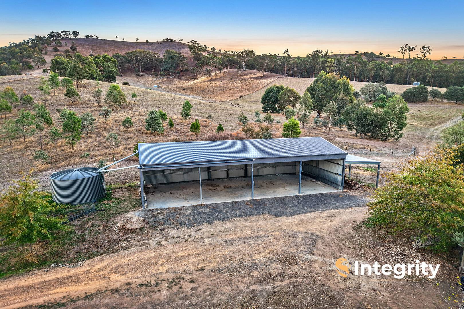 A chicken coop, an orchard (apples, nectarines and apricots + quince and walnuts), separate tool shed, and over 75,000L of water storage.