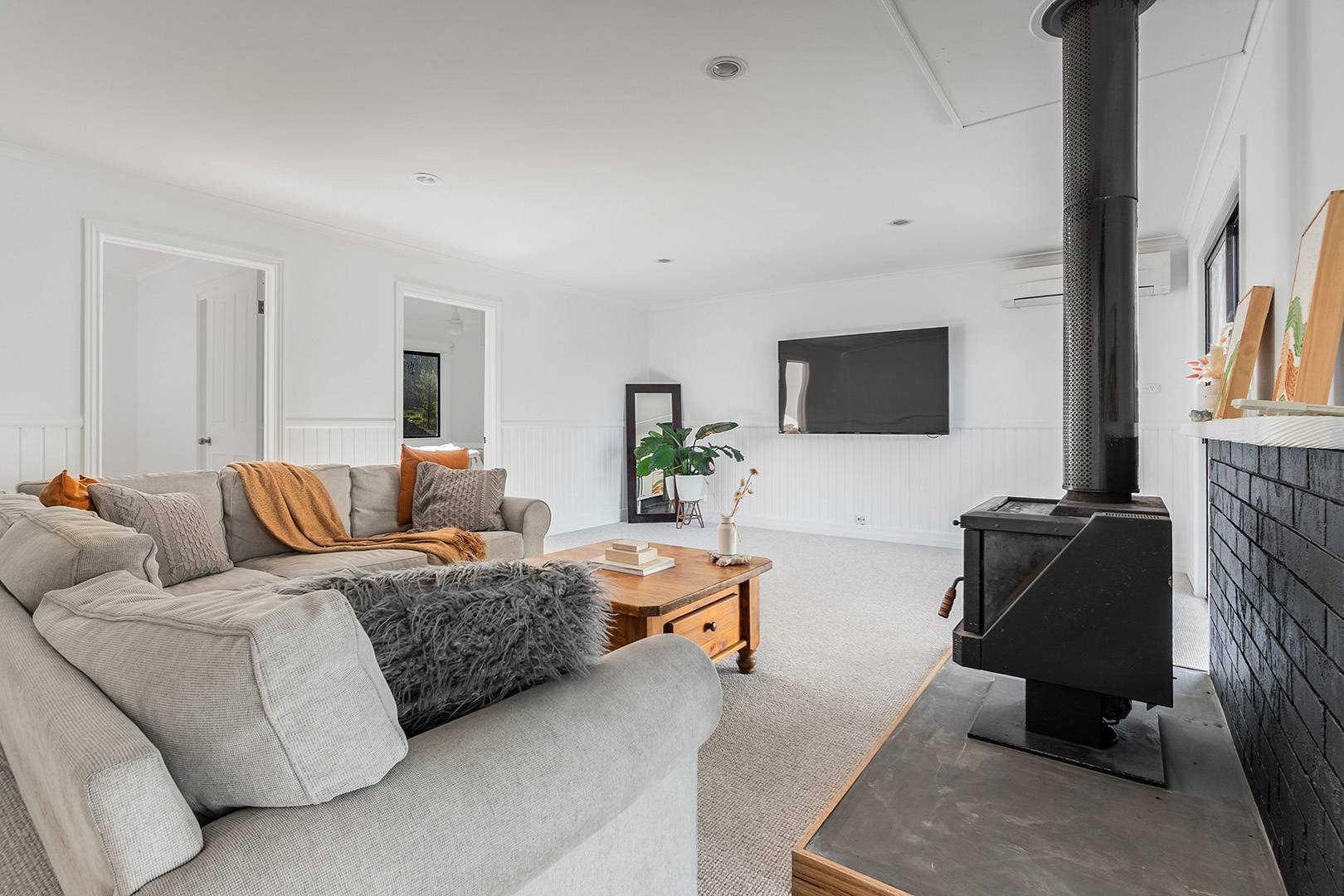 Year-round comfort is ensured with two wood heaters and two reverse-cycle air conditioners.