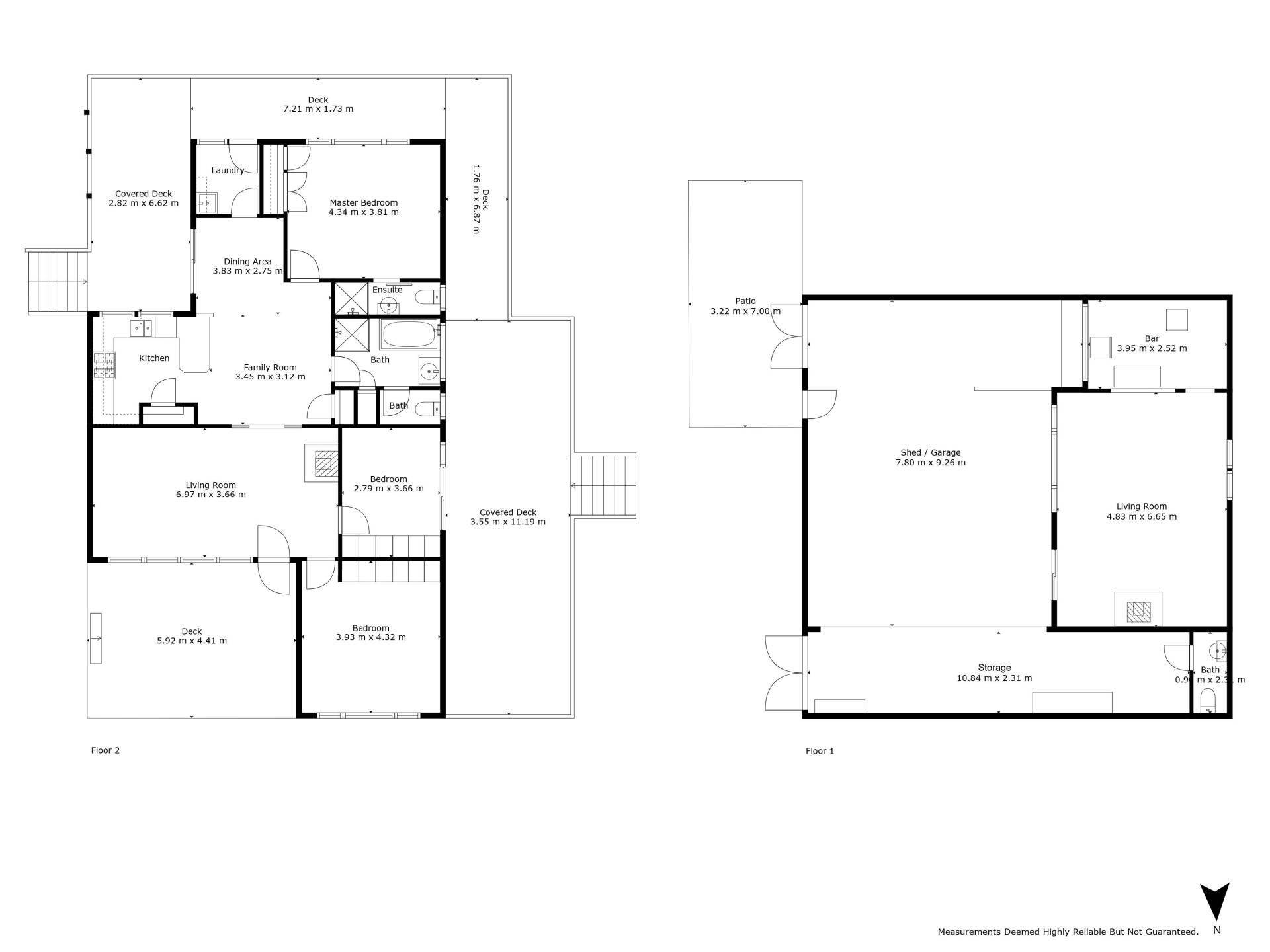 The main bathroom, complete with shower, bath, and single vanity, serves the two secondary bedrooms, while the master suite enjoys its own ensuite for added privacy.