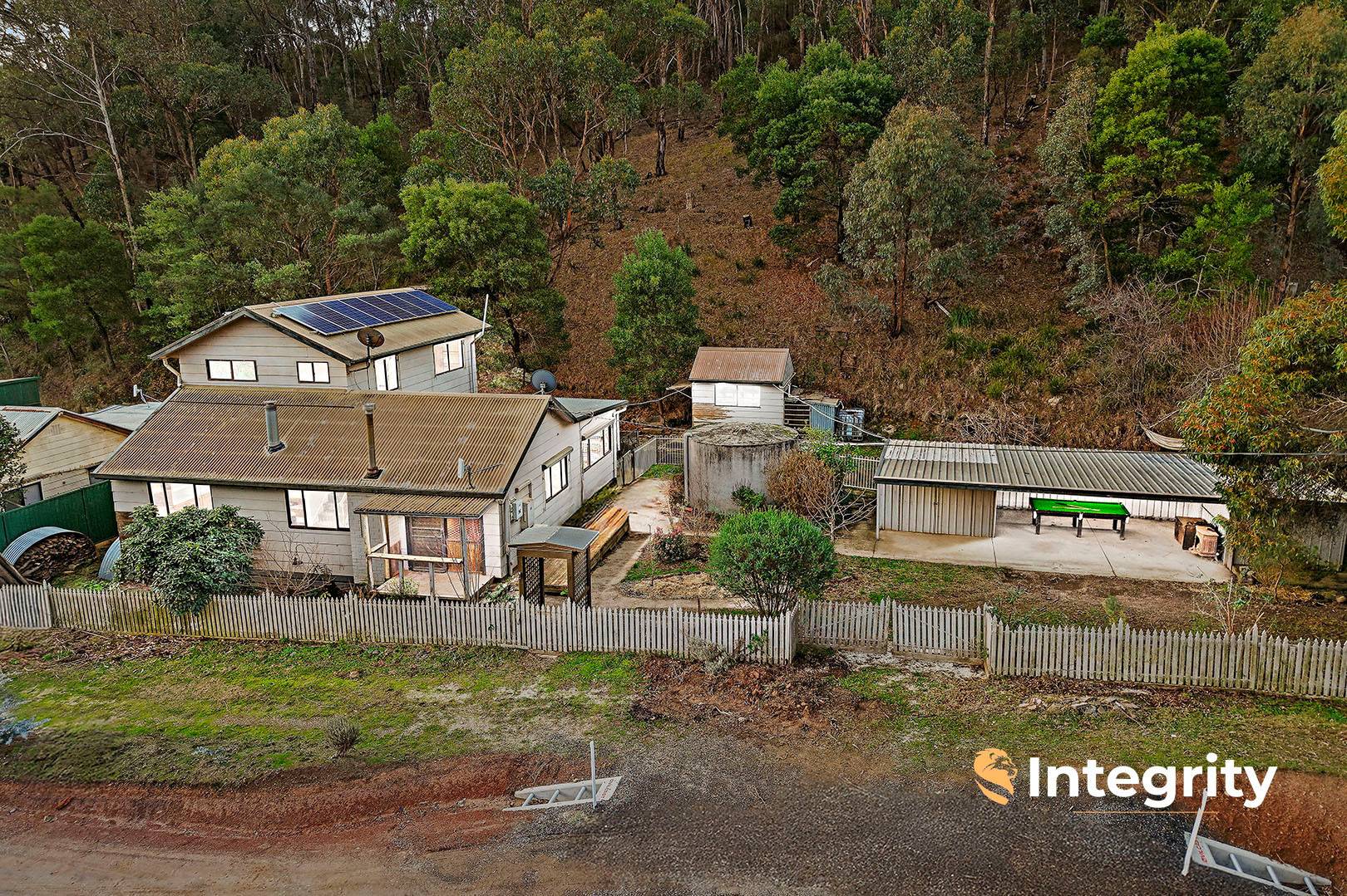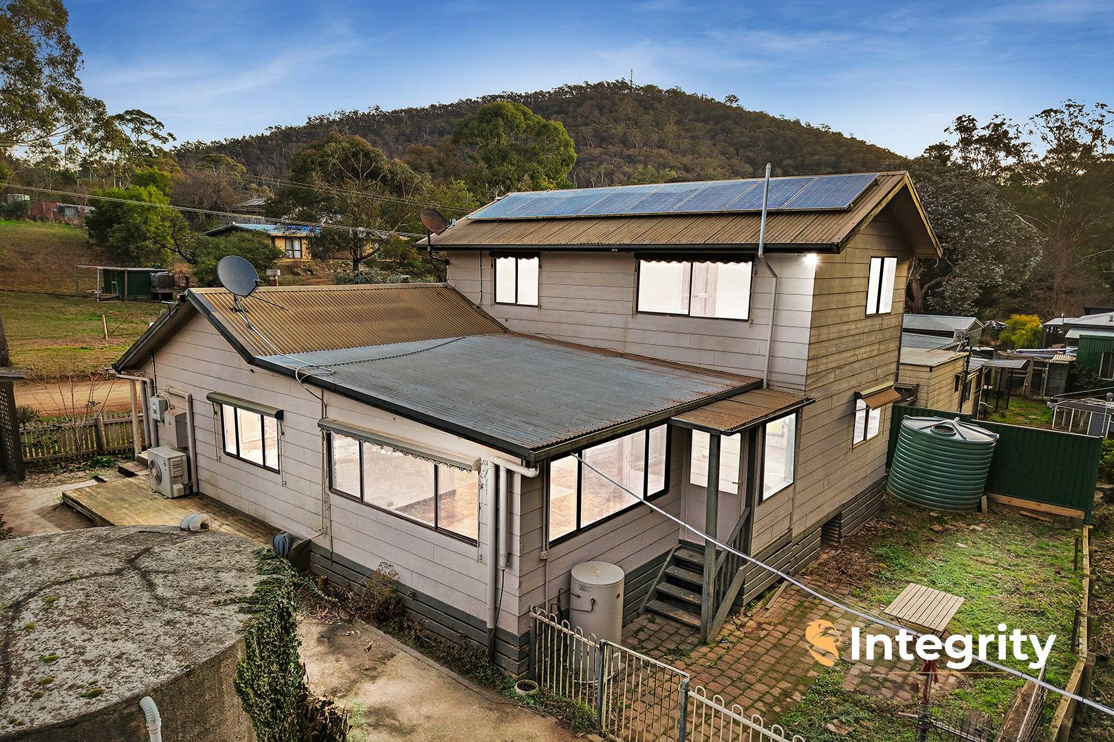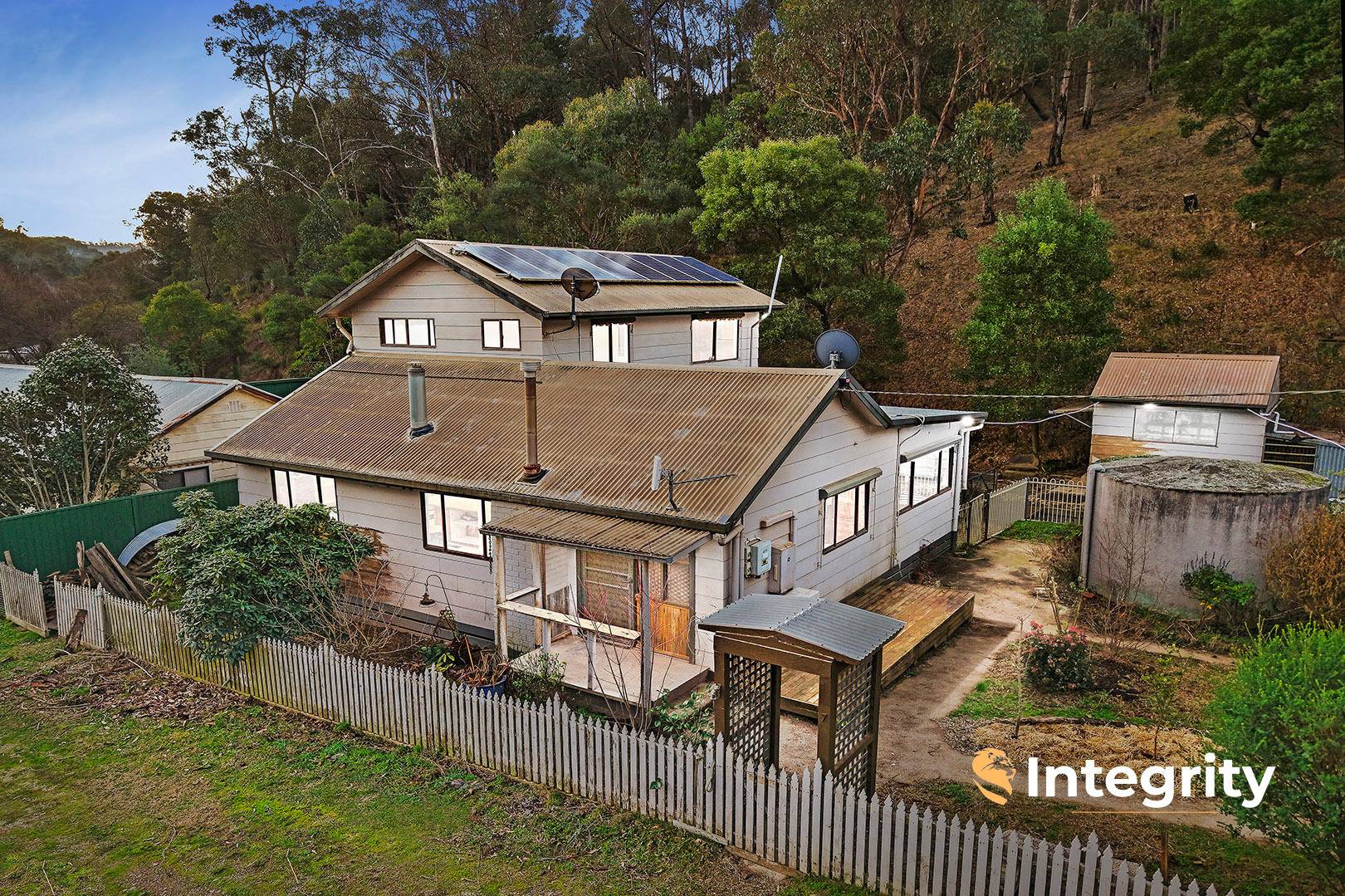 The home features three comfortable bedrooms, a central bathroom, and a practical laundry with toilet. Two wood heaters, a Mitsubishi reverse-cycle air conditioner, and a ducted heat transfer system keep the home cosy all year round.