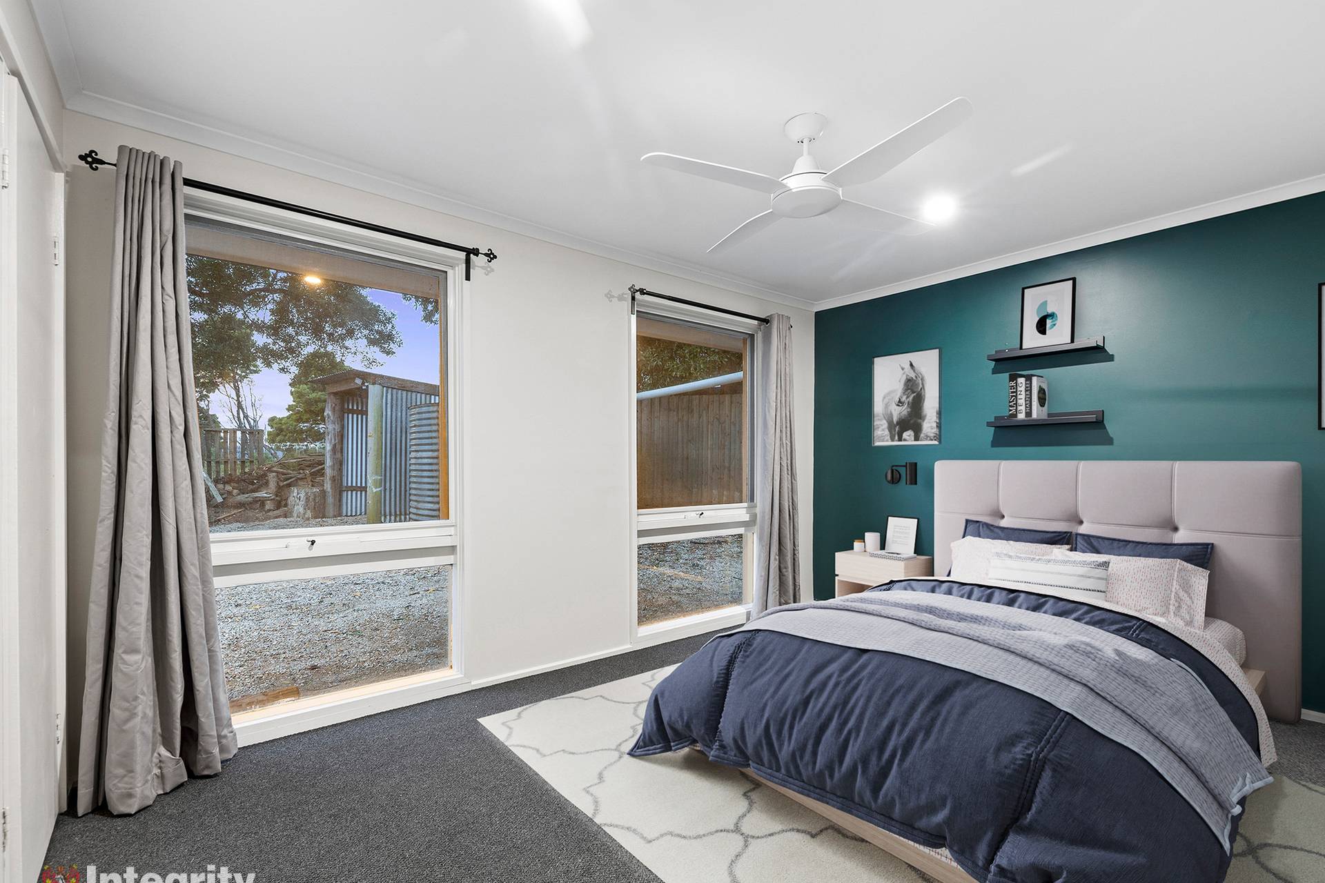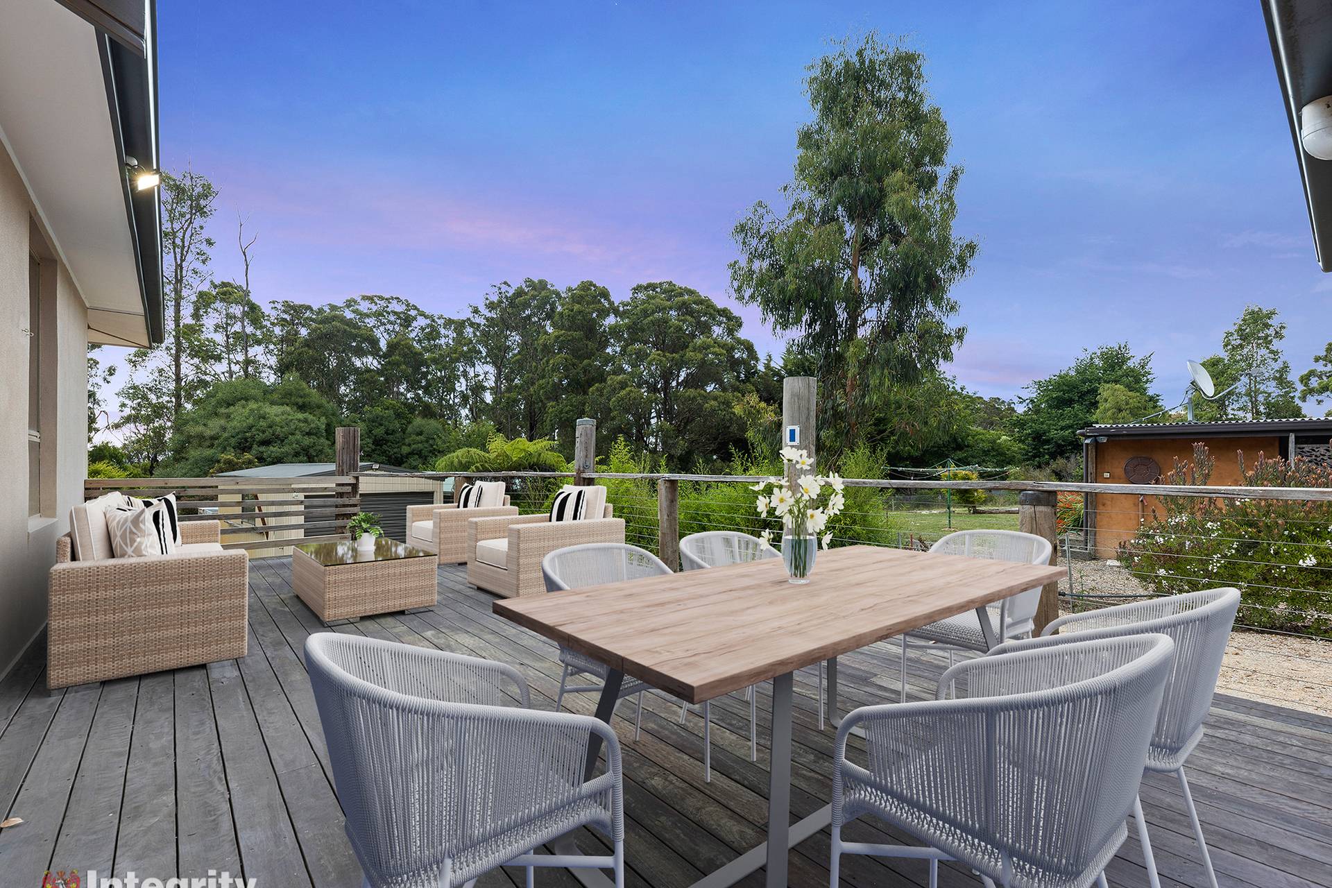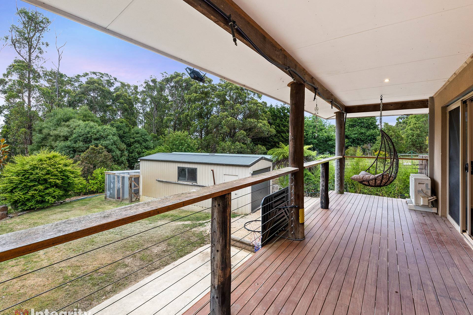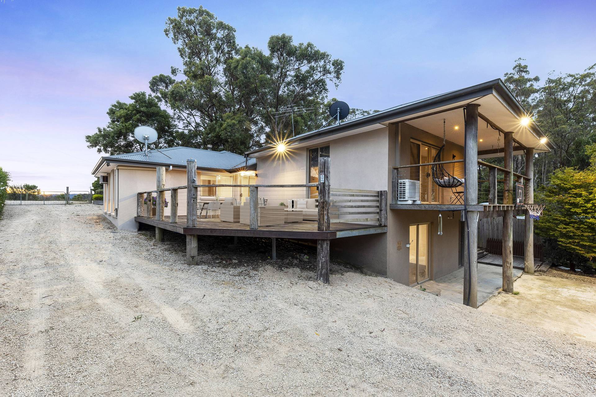 Freshly repainted inside and out with new LED down-lights, new blinds and a great new 18 panel 6kw solar system, there is no doubt the current owners have spent countless hours improving the home. The large floor plan consists of 5 bedrooms, 2 bathrooms, open plan kitchen/dining area, huge lounge and neatly tucked away European laundry. Separately on the lower level is a storage room / cellar and an additional rumpus room connecting to the outdoor patio, perfect for the kids to make all the noise they want away from everyone else. The master suite features a generous walk-in robe, en suite with a beautiful Black Hearted Sassafras wood bench top and a private parents balcony with gorgeous views. Heating and cooling options available are R/C air-conditioning + ceiling fans, panel heating and wood fire to keep everyone toasty warm in winter.