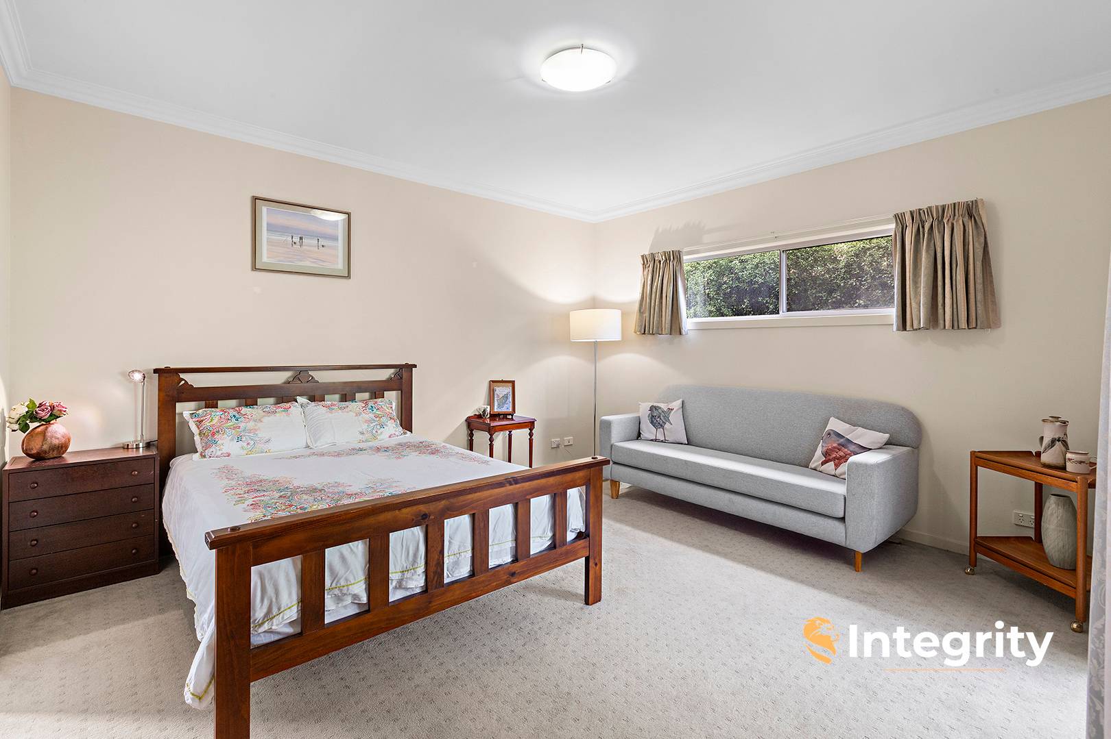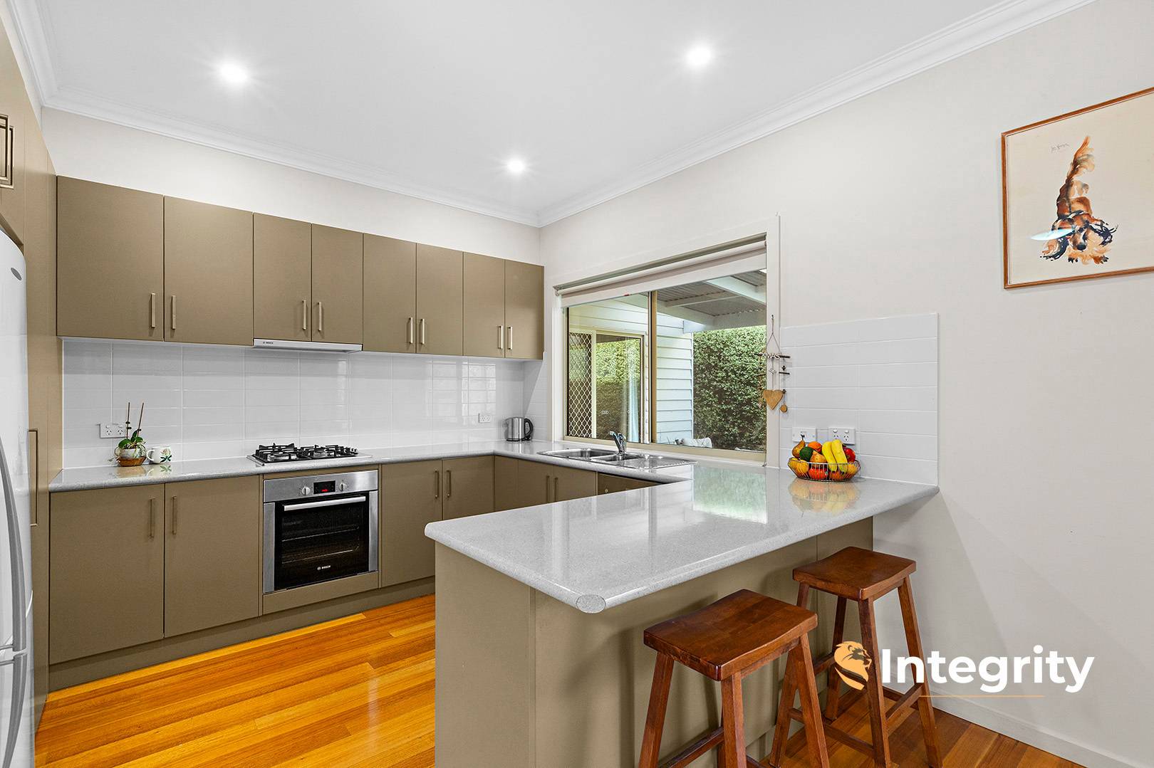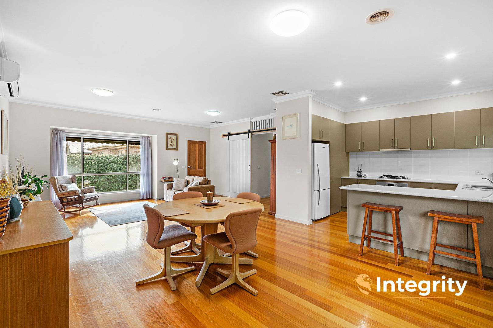 Step inside and be welcomed by a bright and spacious open-plan living zone bathed in northern natural light, complemented by polished timber floors and a calming neutral palette. The generous kitchen is well-appointed with ample bench and cupboard space, making meal prep a pleasure and everyday living seamless.