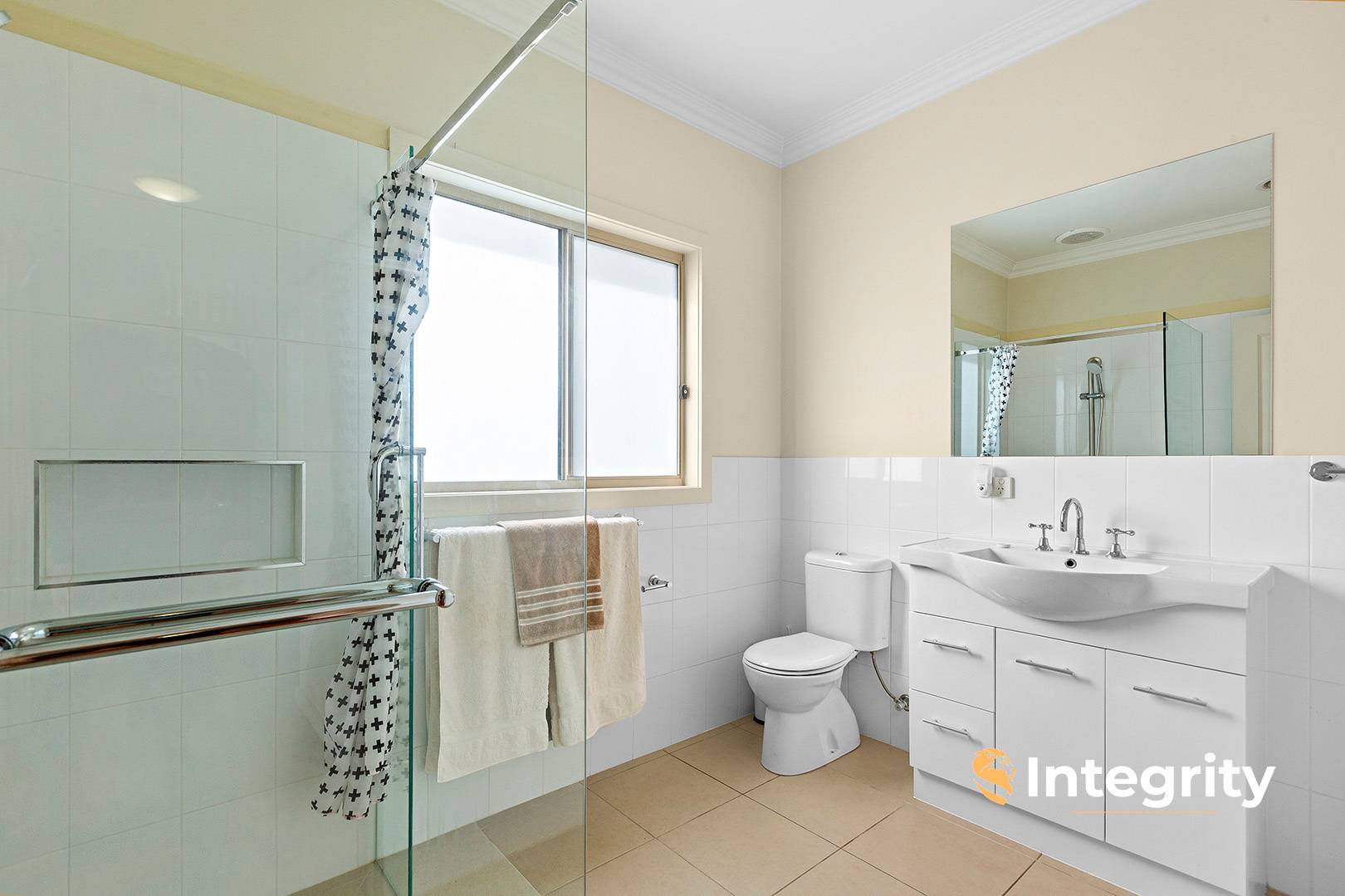 The oversized master bedroom is a true retreat, complete with a walk-in robe, stylish ensuite, and direct access to the undercover outdoor entertaining area. Two additional bedrooms, both with built-in robes, are serviced by a family bathroom featuring a fullsized bathtub.