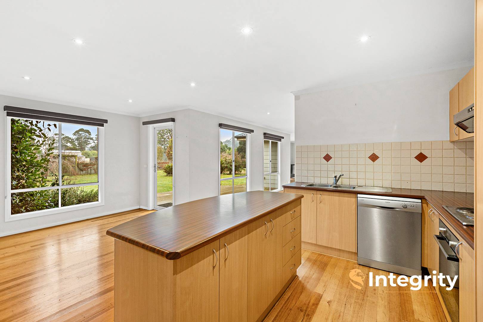The kitchen includes a 600mm oven, electric hot plates, Dishlex dishwasher and practical Laminex benchtops. There's a large laundry, generous wall-to-wall linen storage in the dining area, and a functional layout that suits family life.