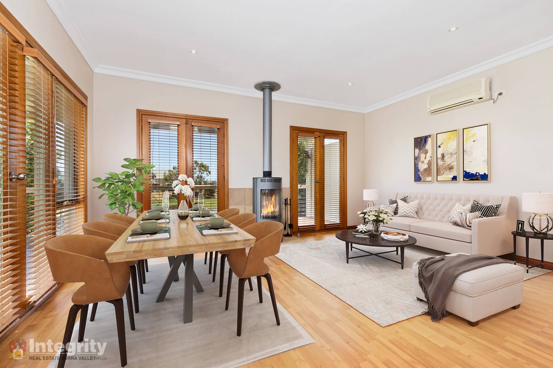 Features include: full en-suite and walk in robe to the main bedroom. R/C A/C, the ambiance of wood heating for those chilly winter months and an undercover decking/veranda which overlooks the lake at the back of the home.
