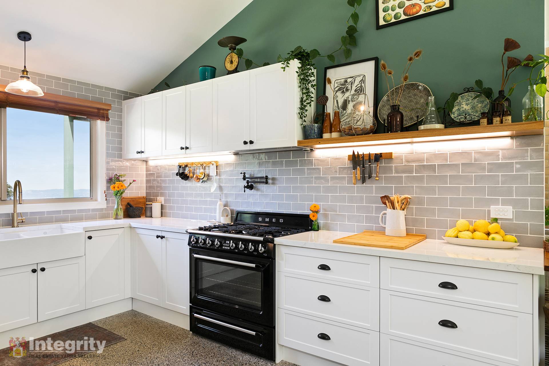 On the practical side, this energy efficient house is powered by solar panels and a 48V battery system, with backup connection to the grid. Add to this double-glazed windows, a gas fired hydronic heating system throughout, a Nectre wood heater, 6 water tanks, a solar thermal HWS with an electricity backup, an automatic fire sprinkler system and its own fire bunker. The productive orchard is fully fenced, the veggie garden provides beautiful fresh produce and the chickens are responsible for the eggs.