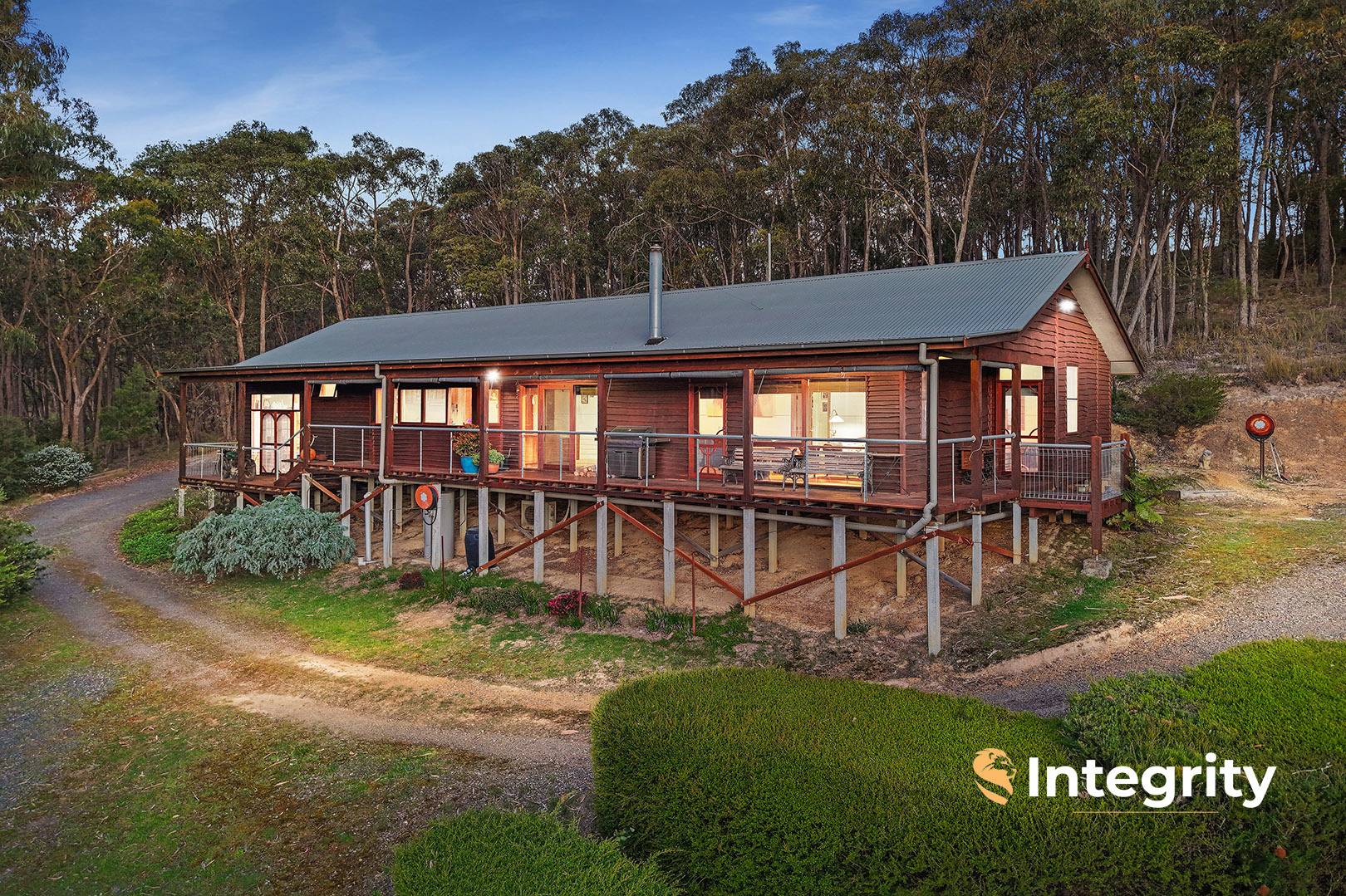 Positioned in view of hillside behind Gruyere / Coldstream's Killara Road, the north-facing home is an exceptionally crafted hardwood homestead. It comprises 2 living spaces including artist's studio, and an open plan kitchen / meals / lounge with split system and large cast iron wood heater, with sliding doors to wraparound verandas which soak in the view. The home is purely sympathetic with its surrounding, with timber flooring throughout and redgum benchtops in the kitchen.