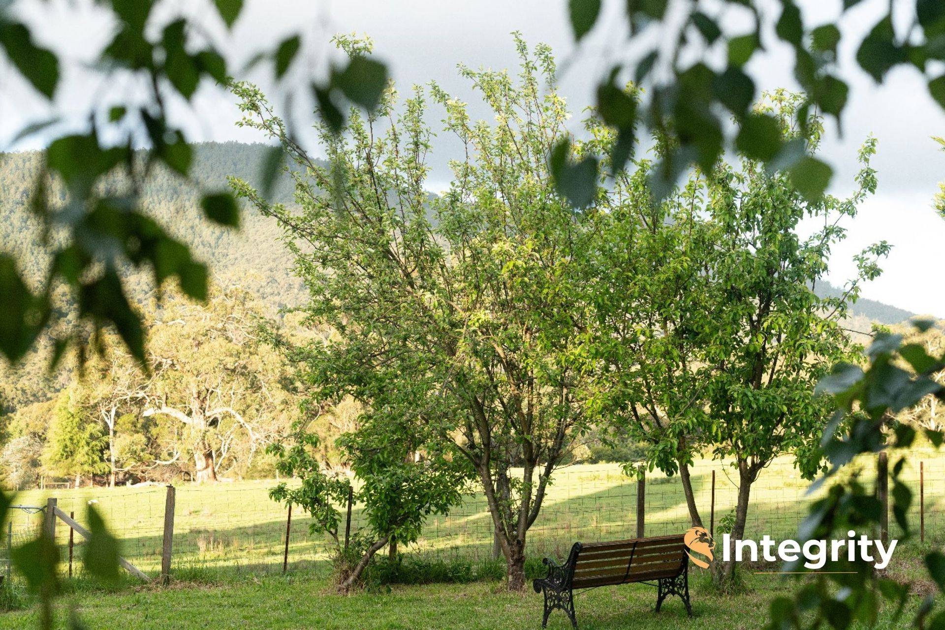 Outside, storage is catered for by 3m x 6.5 m concrete based shed, chook pens for the aspiring market gardener, and additional tool storage. The yard is beautifully lined by silver birches and enjoys a superb 180 degree outlook from Mt St Leonard to Mt Riddell to Mt Toolebewong, right at your back fence.