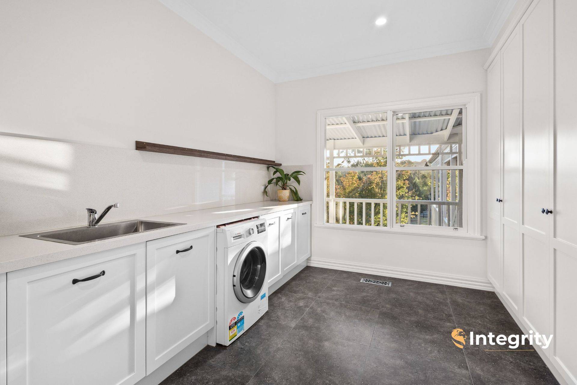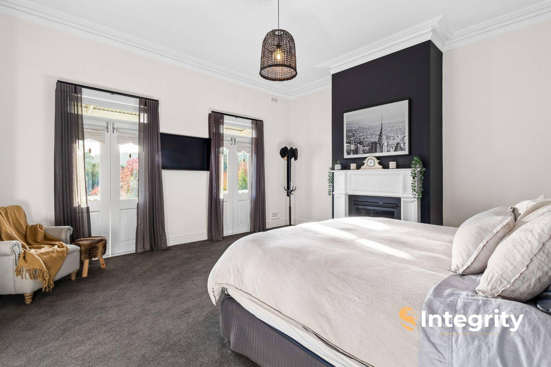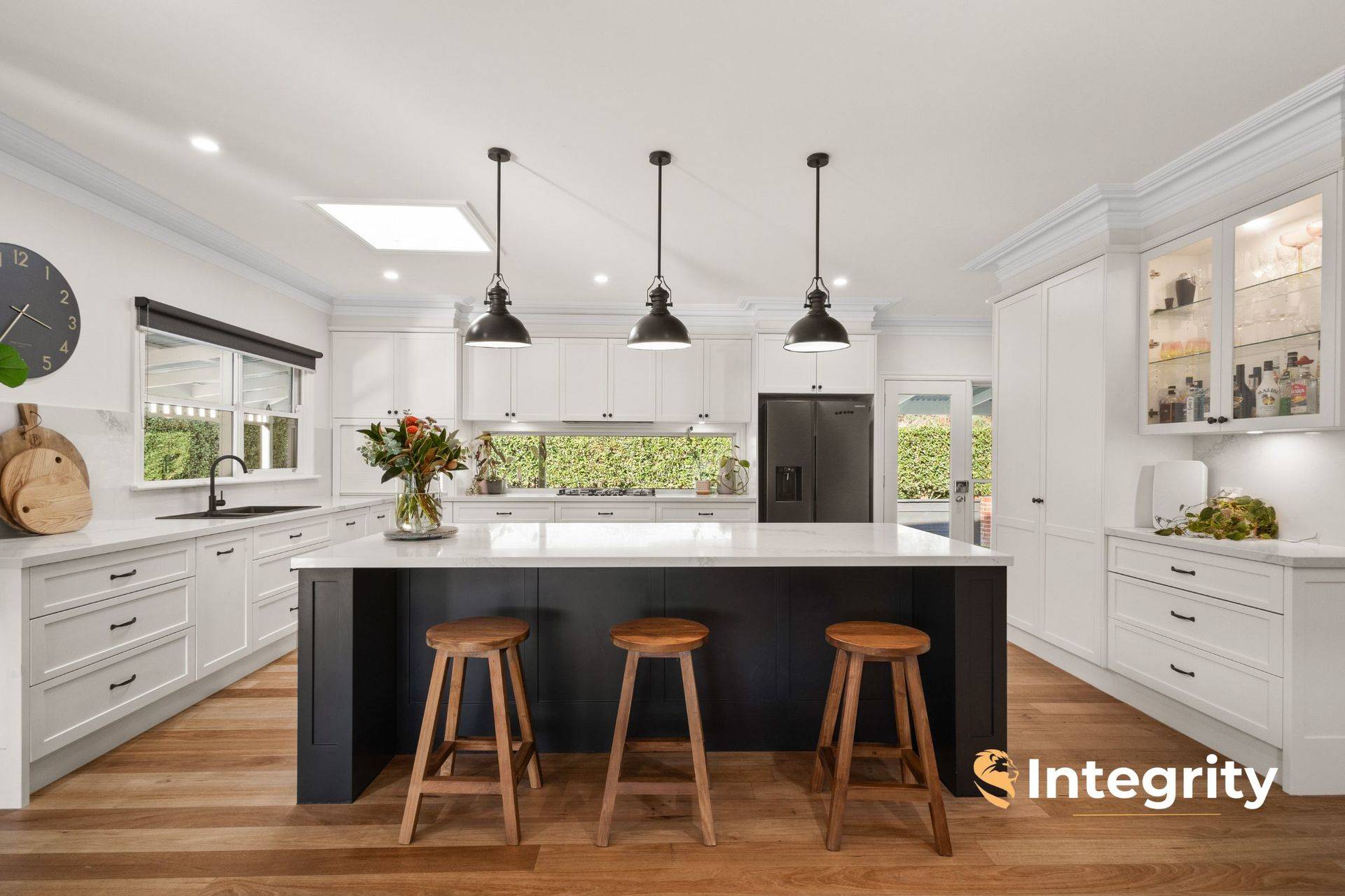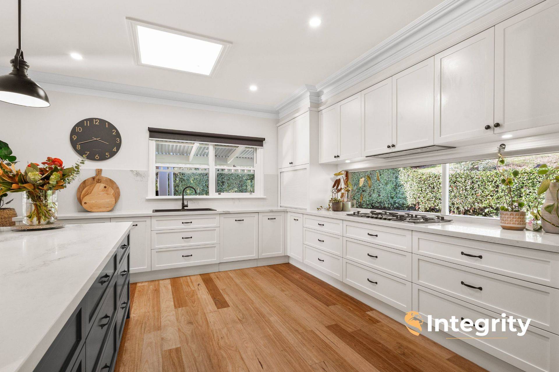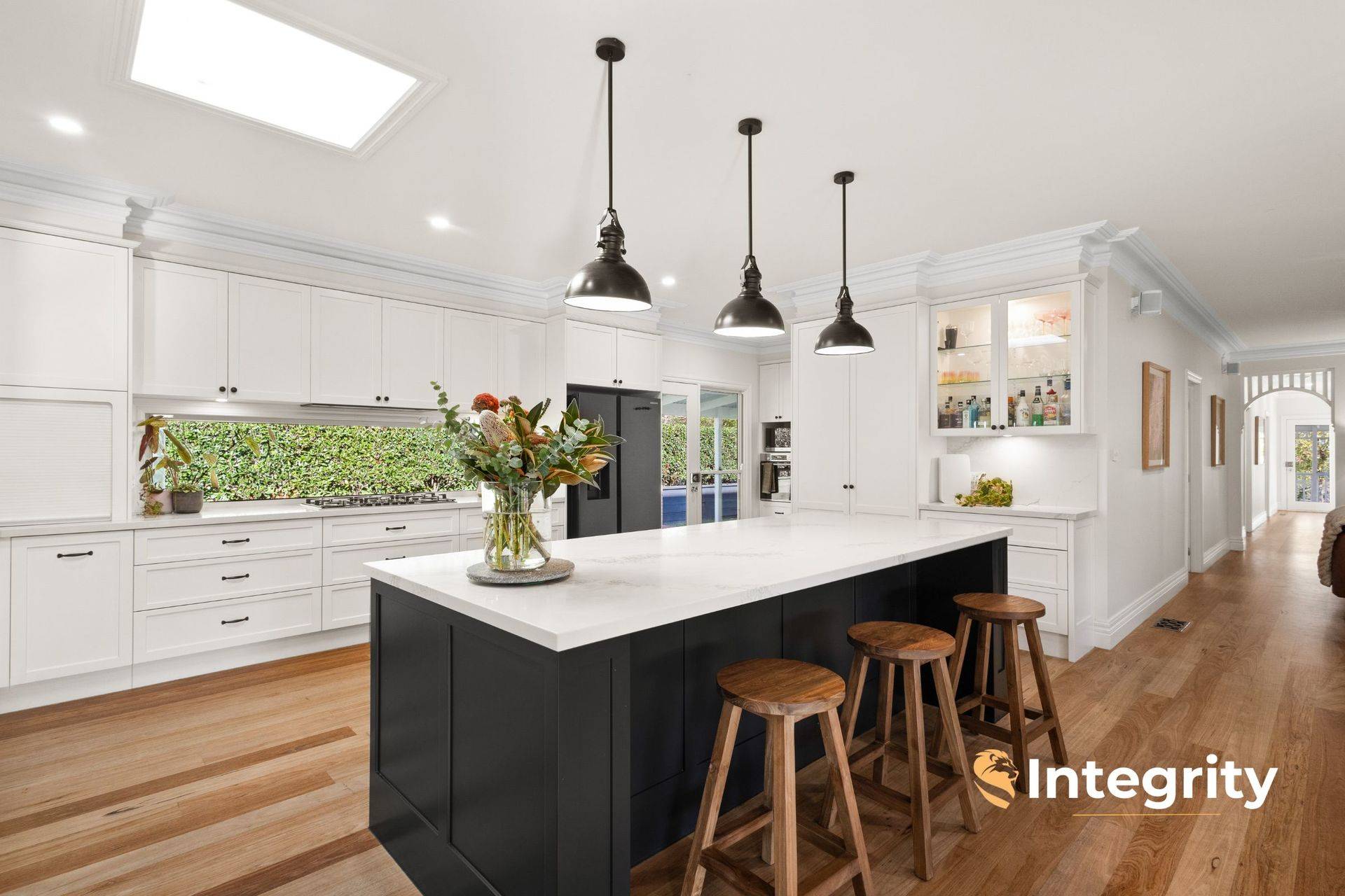 Only 17 years old, and recently renovated to be kept in modern and comfort and style by the current and only owners, the home offers 3 king-sized bedrooms plus 3.6 m x 2.7 m study / fourth bedroom, and an upstairs retreat with walk-in robe. The master suite occupies its own wing of the home, under 11 ft ceilings, complete with gas log fire, dressing room and enormous en suite with double vanity, shower and toilet. The spacious family bathroom equips double vanities, freestanding bath and shower. The designer kitchen enjoys high-end 2pac cabinetry throughout, Caesarstone benchtops and a discreet butler's pantry with dual wall ovens.