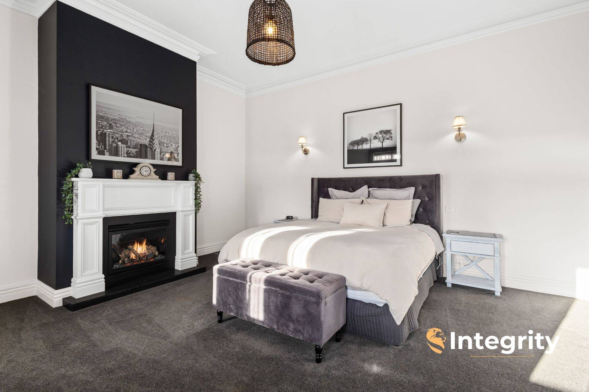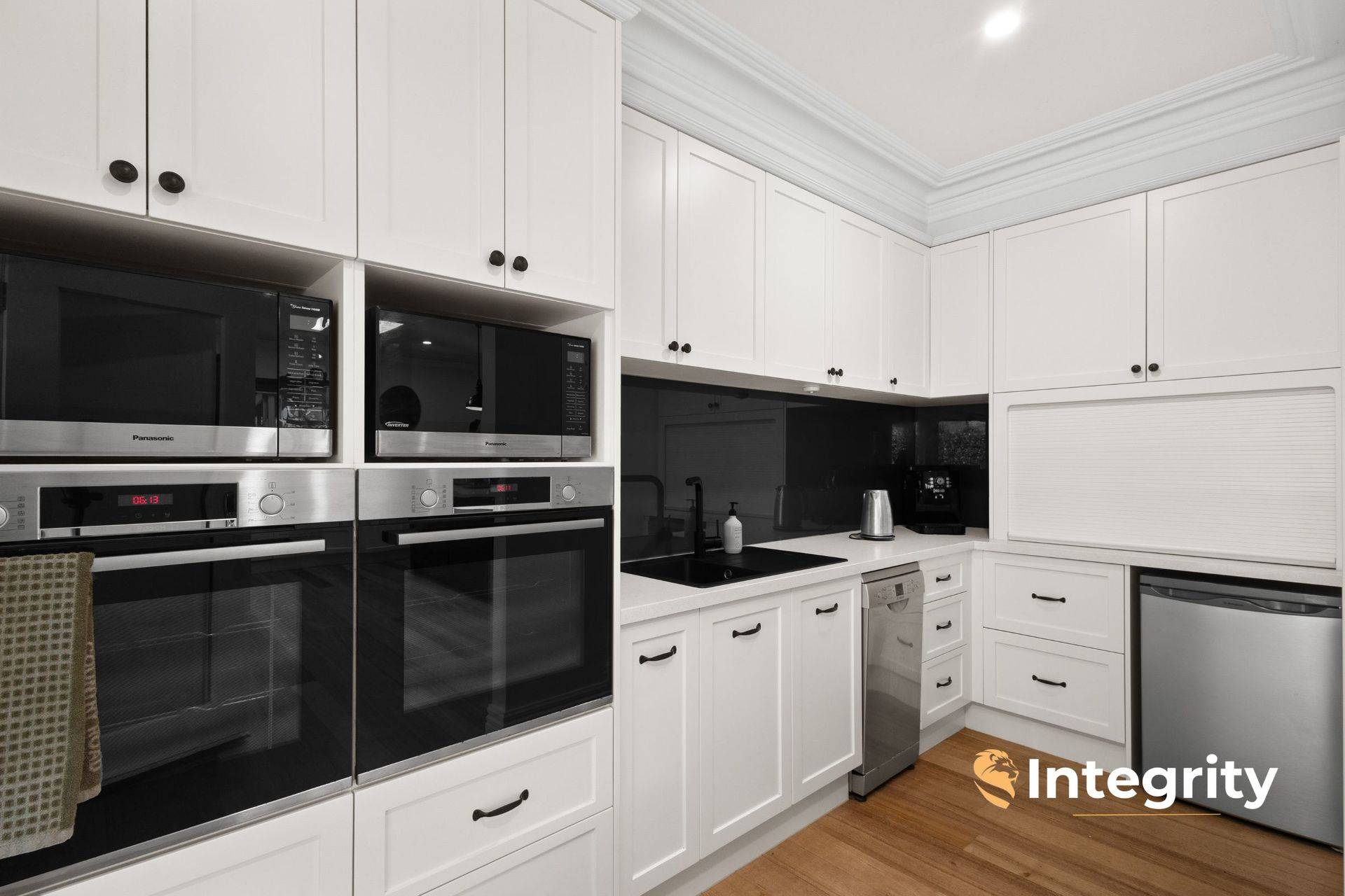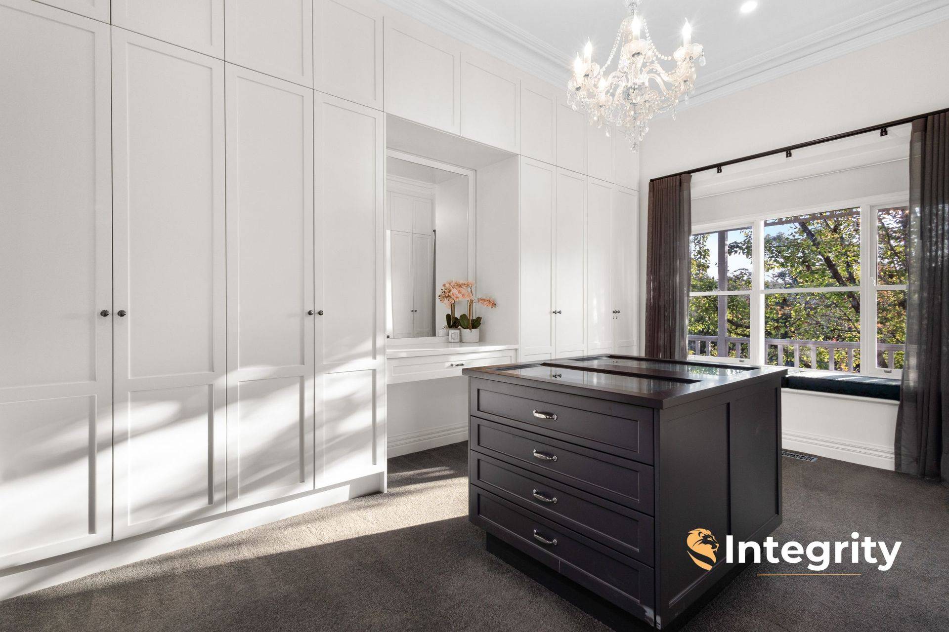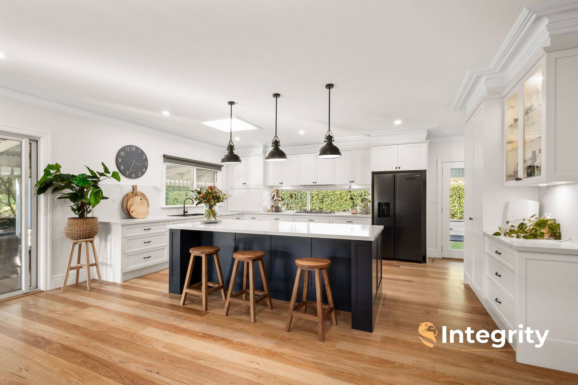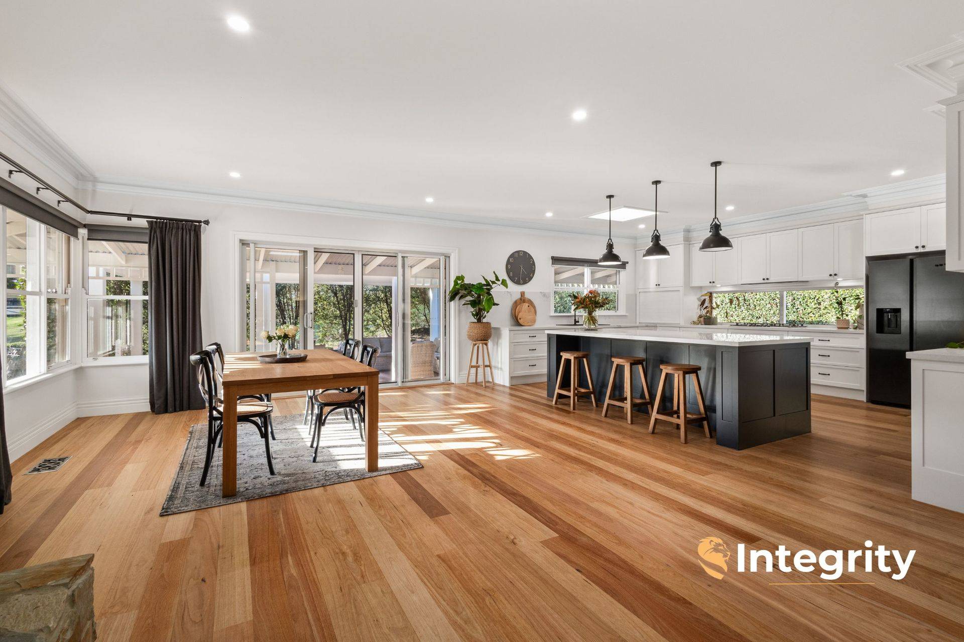 Only 17 years old, and recently renovated to be kept in modern and comfort and style by the current and only owners, the home offers 3 king-sized bedrooms plus 3.6 m x 2.7 m study / fourth bedroom, and an upstairs retreat with walk-in robe. The master suite occupies its own wing of the home, under 11 ft ceilings, complete with gas log fire, dressing room and enormous en suite with double vanity, shower and toilet. The spacious family bathroom equips double vanities, freestanding bath and shower. The designer kitchen enjoys high-end 2pac cabinetry throughout, Caesarstone benchtops and a discreet butler's pantry with dual wall ovens.