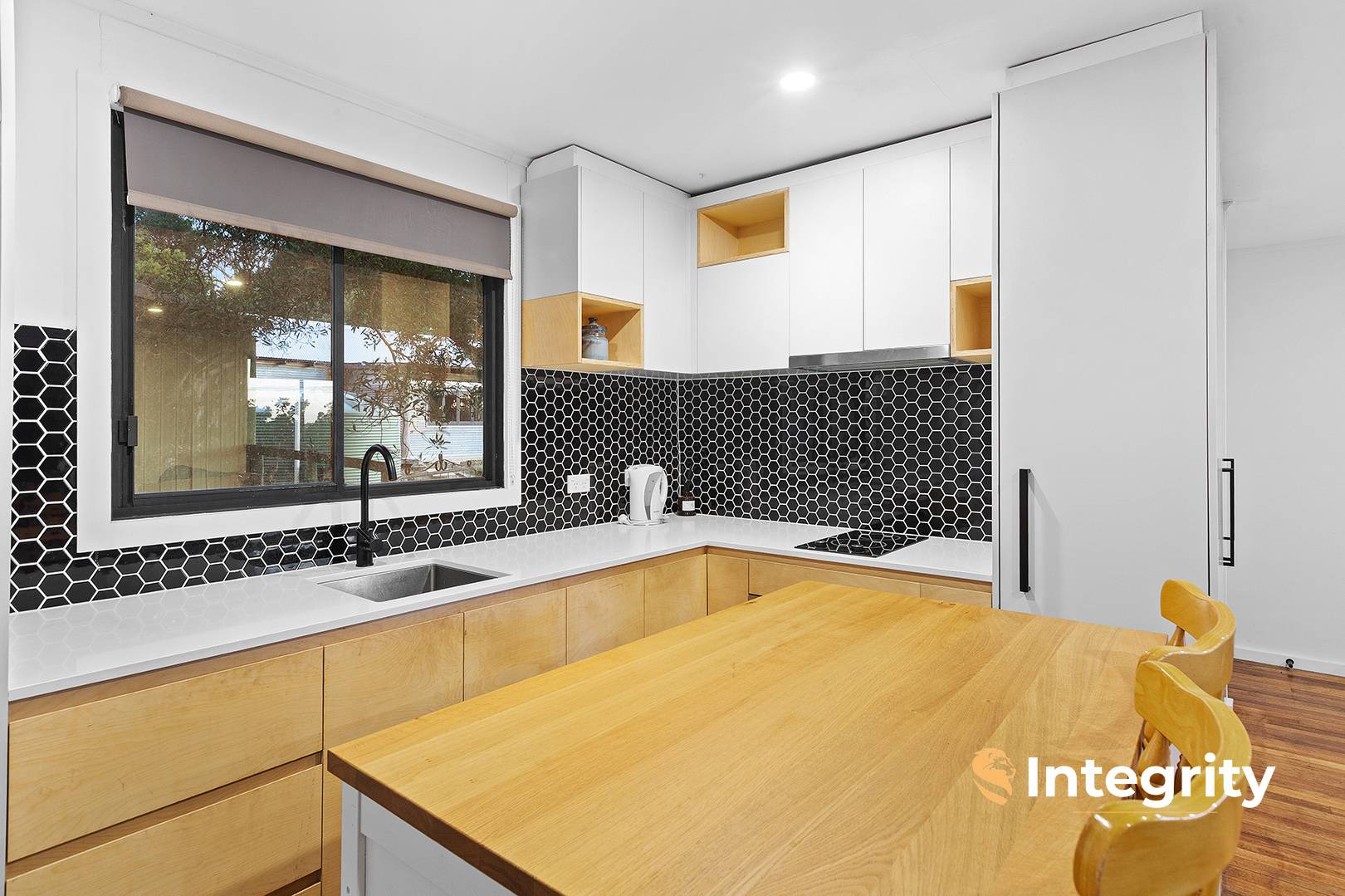 Features include Tasmania Oak hardwood floors, kitchen with laminex benchtops and quality stainless steel appliances, Mitsubishi split system heating/cooling, Ultimate wood heater, and gas instant hot water service.