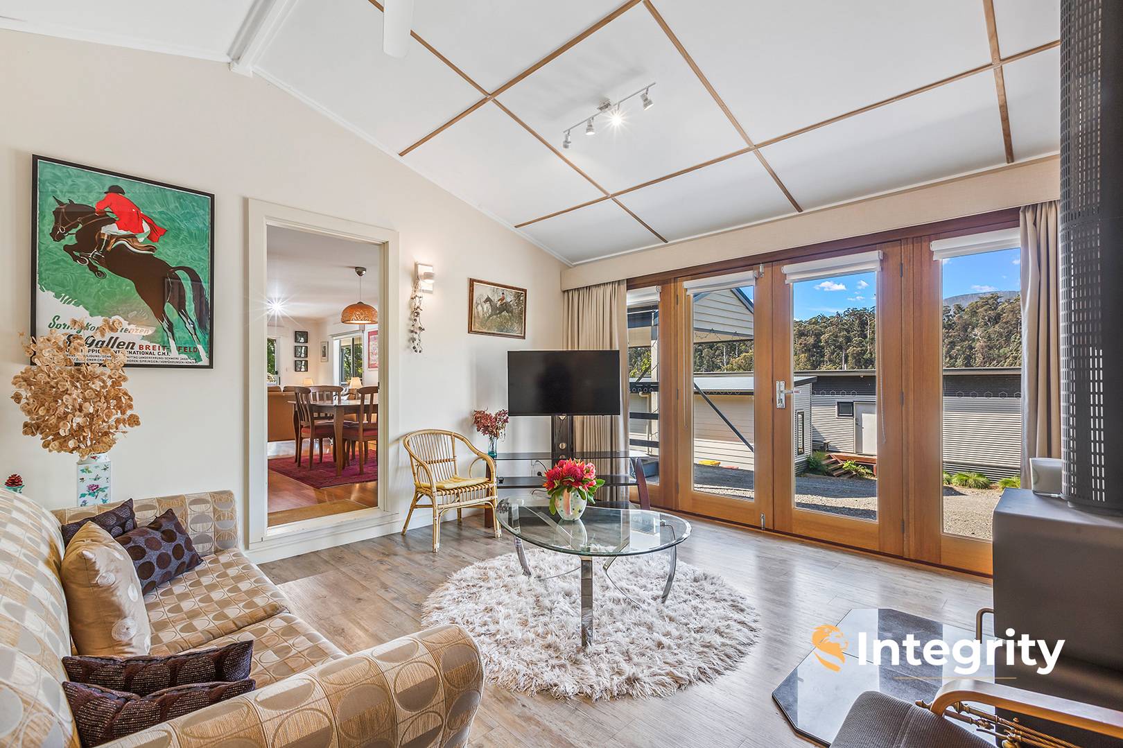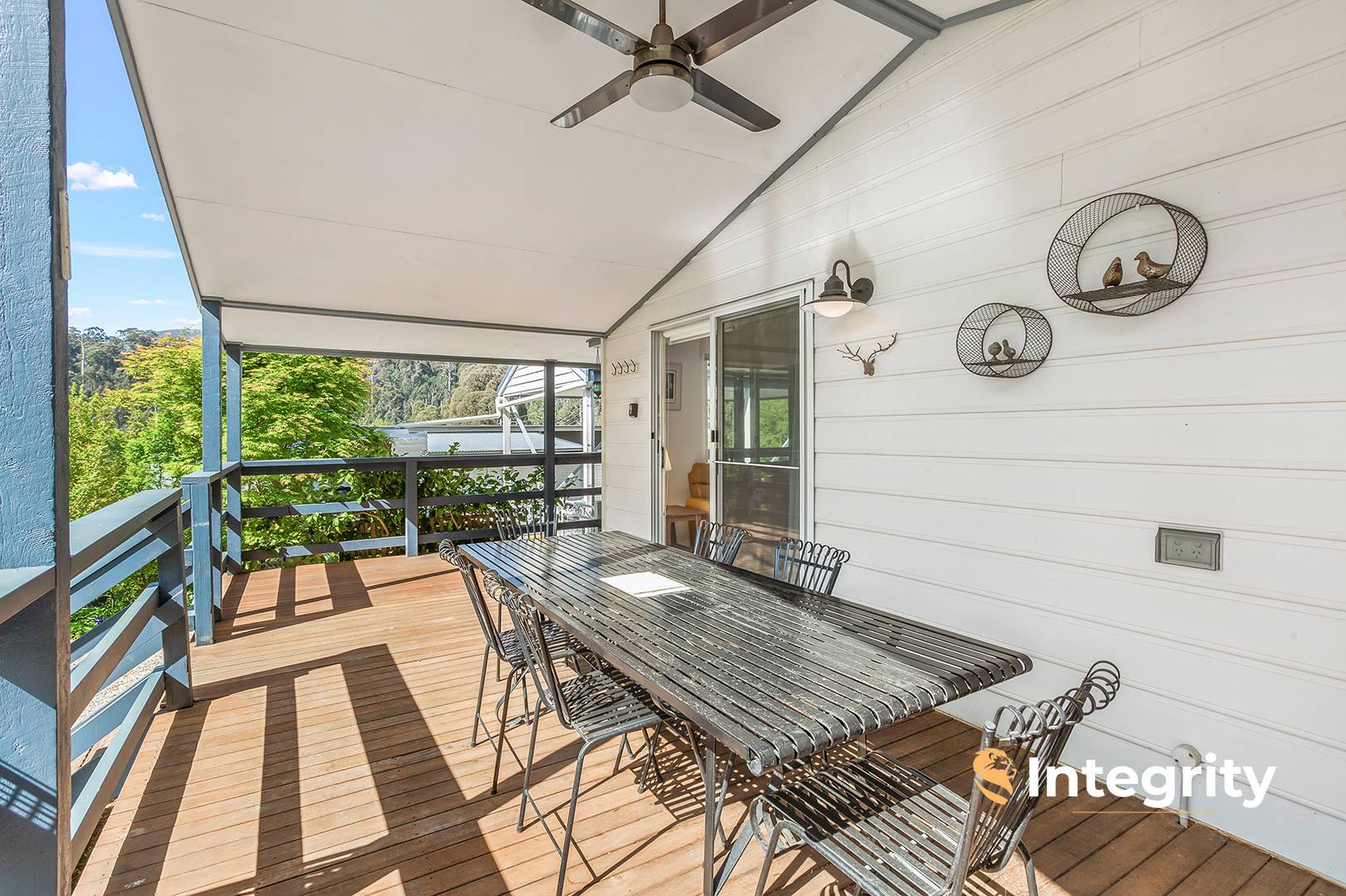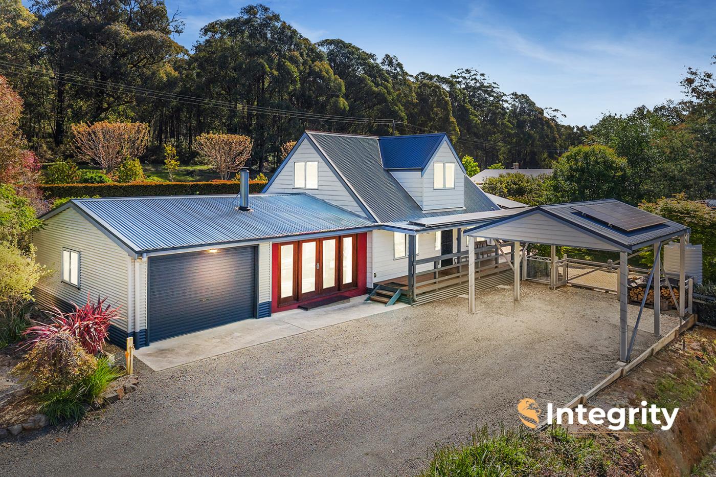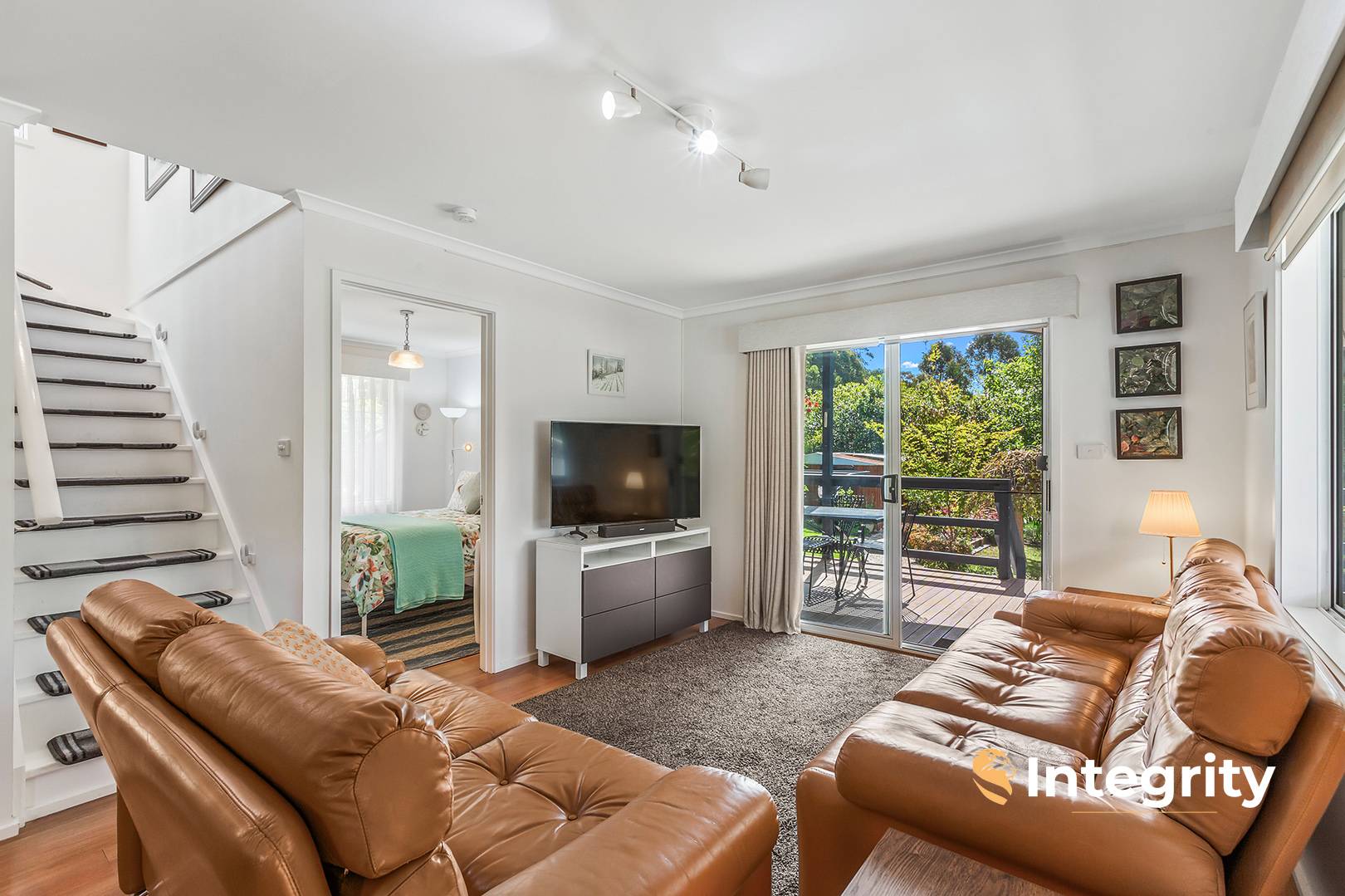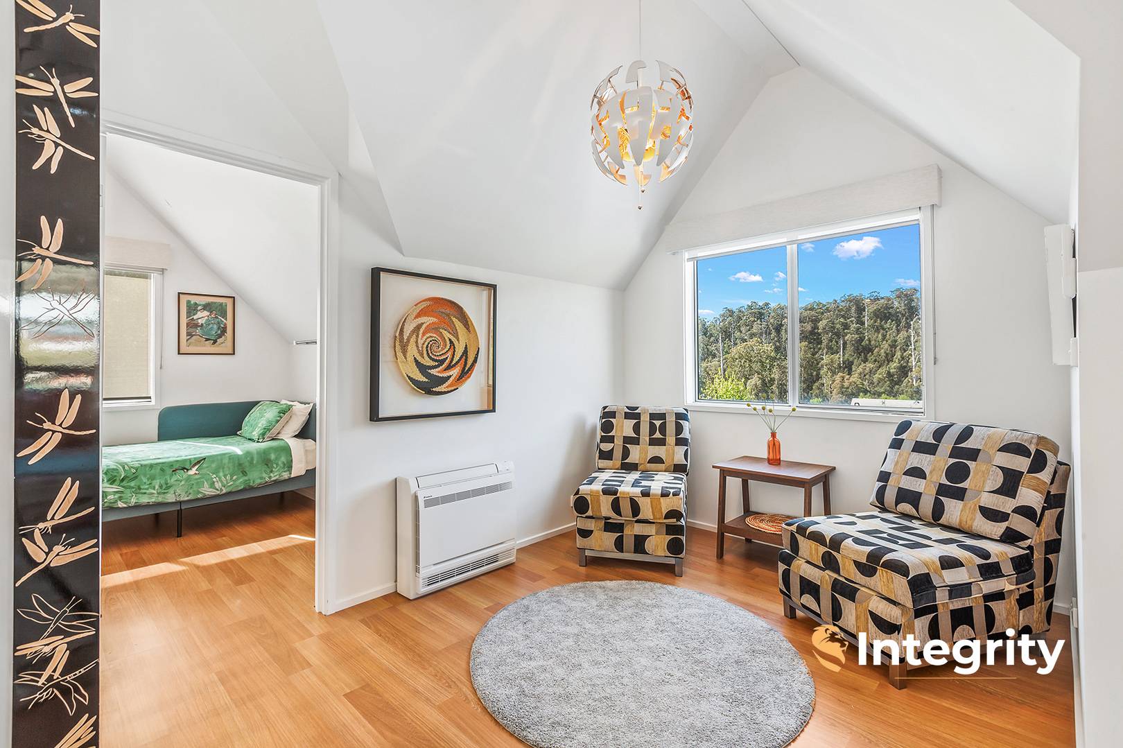 Inside, the home is rich in character and warmth. The upper level features a spacious main bedroom with walk-in robe (or optional third bedroom), a cosy sitting area, and picturesque scenic views. Ceiling fans are installed in the main bedroom upstairs and the main family room downstairs for added comfort.