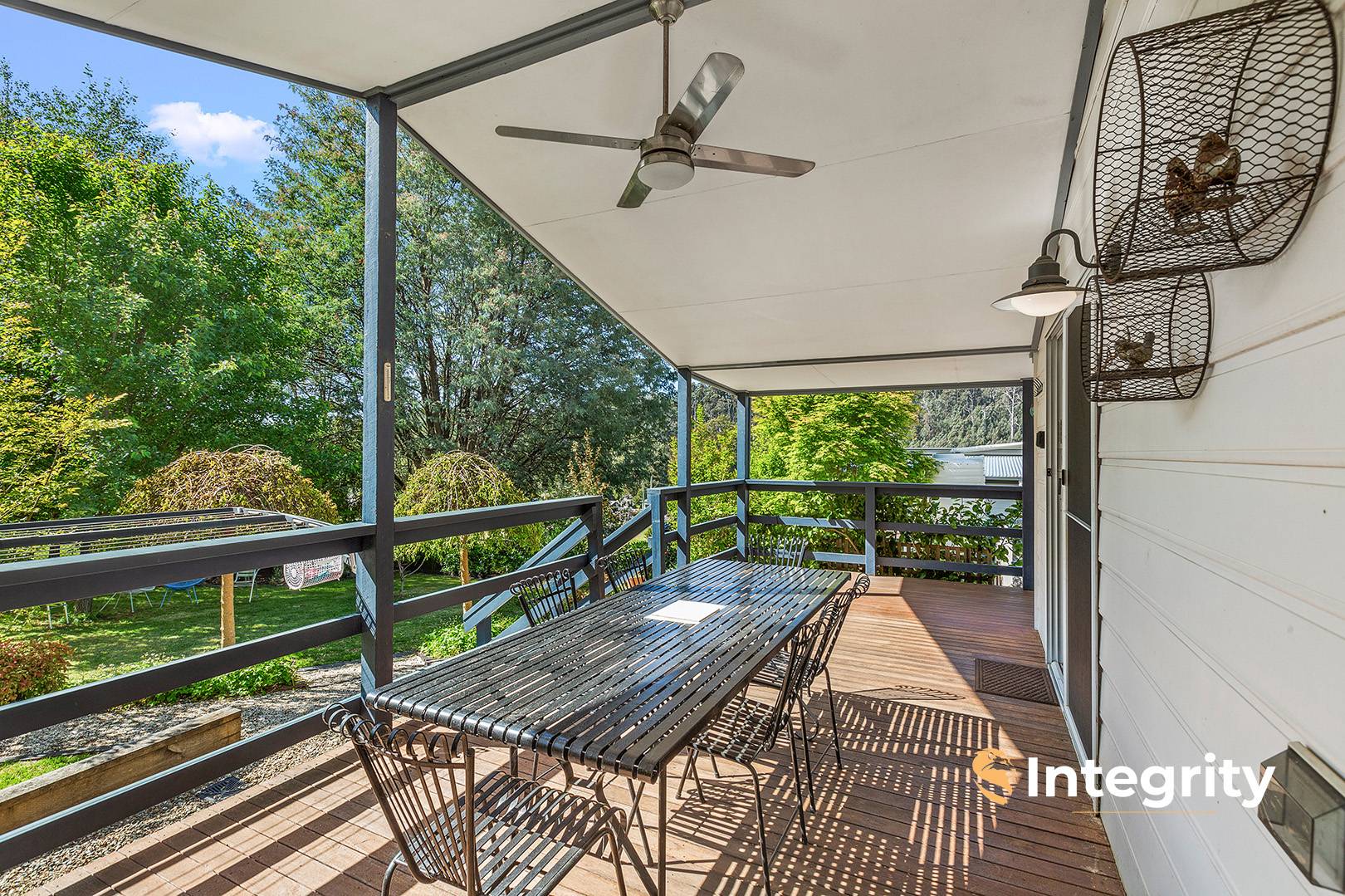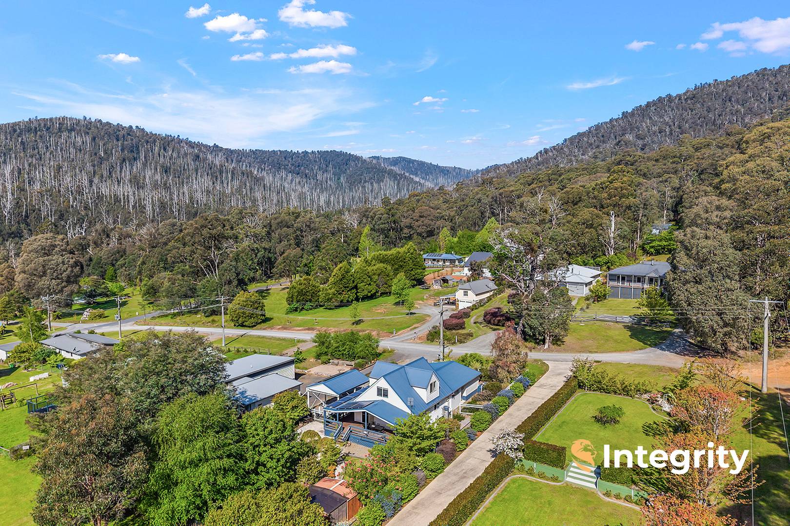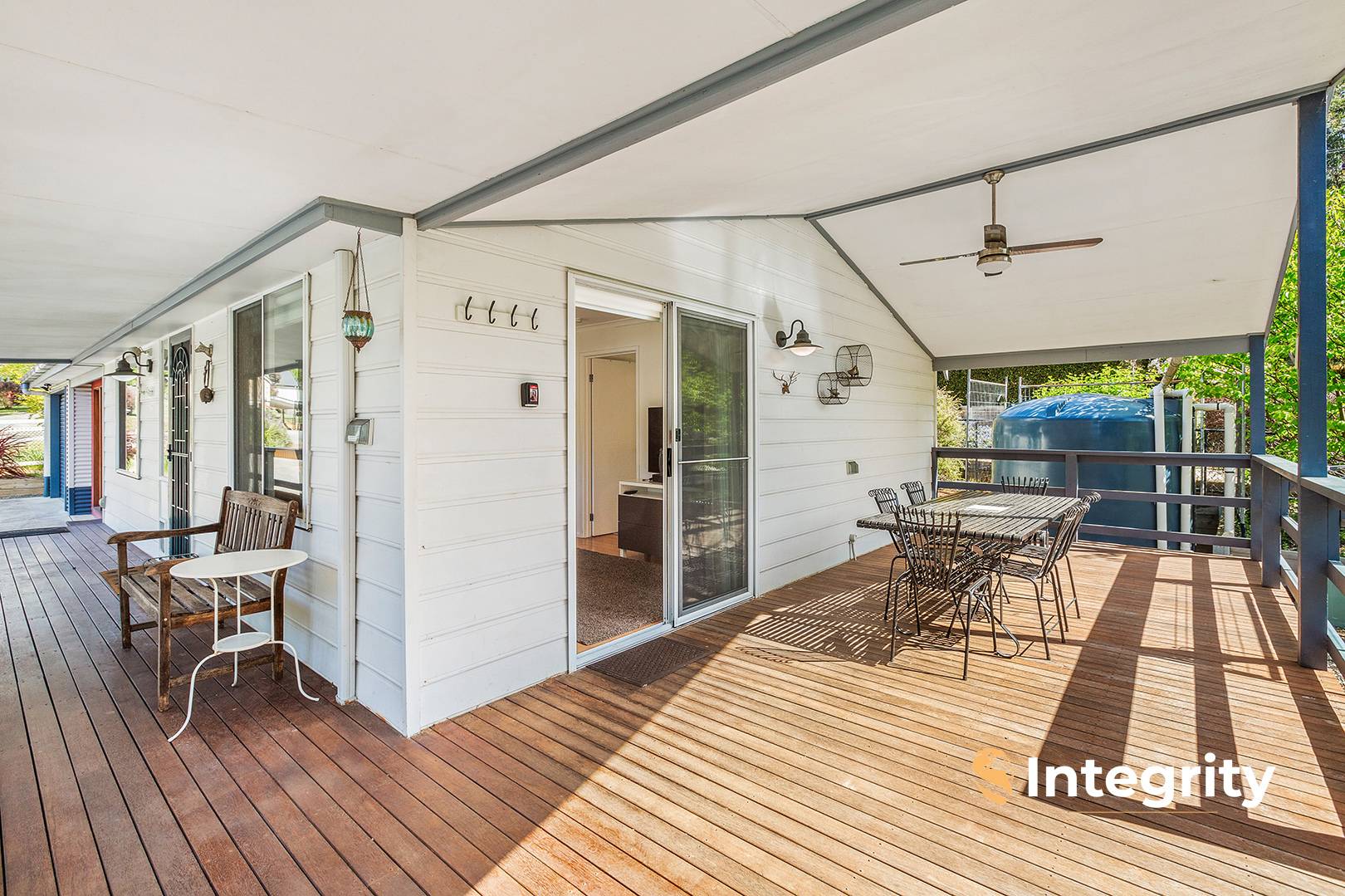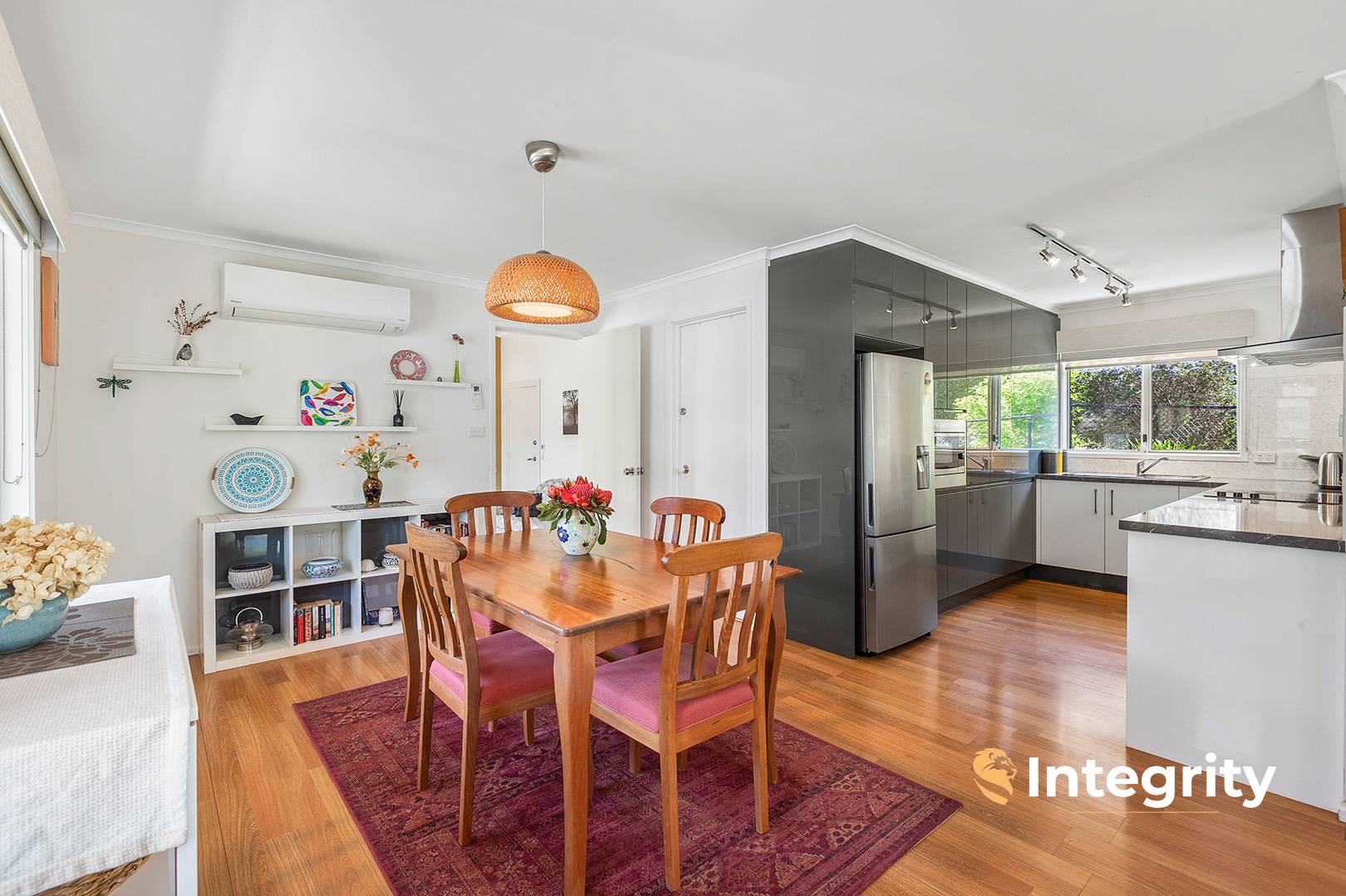 Inside, the home is rich in character and warmth. The upper level features a spacious main bedroom with walk-in robe (or optional third bedroom), a cosy sitting area, and picturesque scenic views. Ceiling fans are installed in the main bedroom upstairs and the main family room downstairs for added comfort.