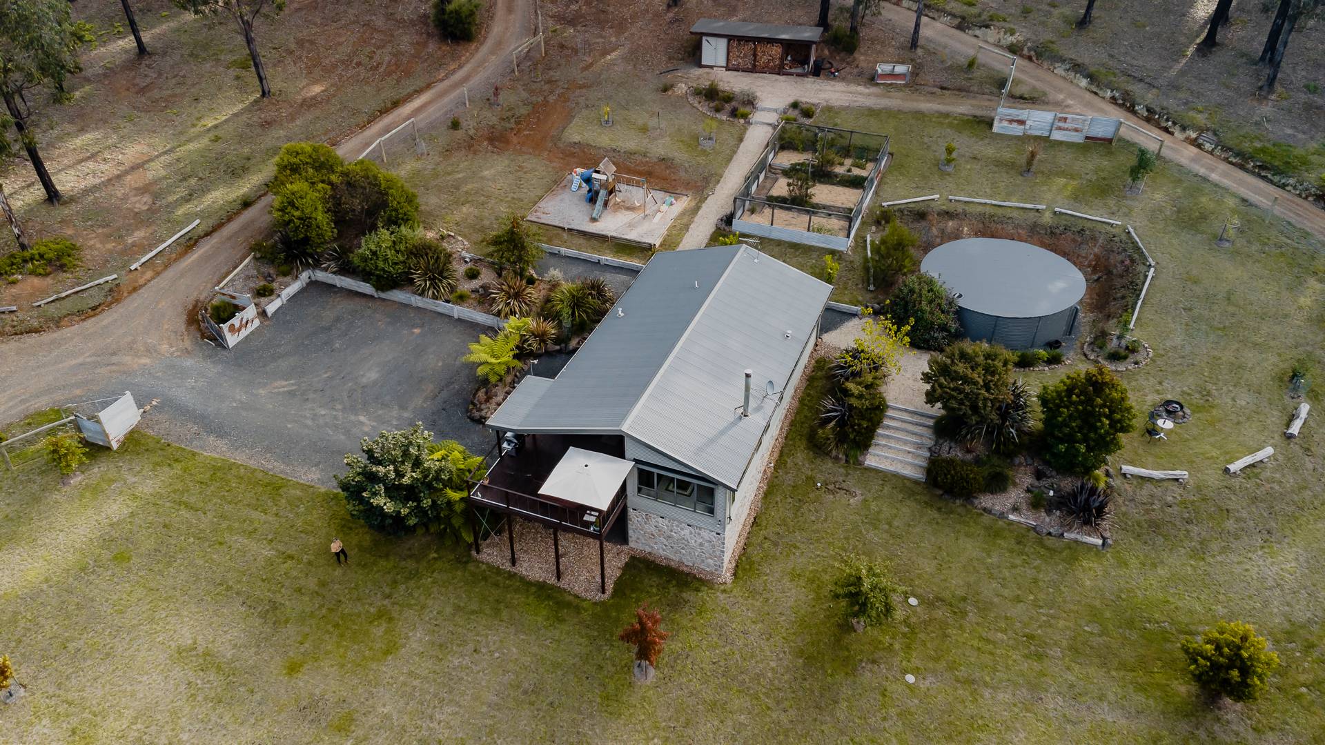 Externally is where the property really shows off. As you enter the long circular private driveway, you are greeted with the grandeur of the property and all its splendour. The shedding and car accommodation deserves a praiseworthy mention comprising a large 10mx10m shed with concreate base and power, remote control roller door, internet mobile access and insulated home office space. The additional 2 woodsheds store years' worth of wood to ensure you are well equipped for those colder winter months. There is also 2 phase power connected to the property perfect for equipment and machinery. Other features include 110,000L water tank plus 30,000L backup tank, fully enclosed veggie patch, playground for the kids, 1 dam, walking tracks, and access to the adjoining National Park.