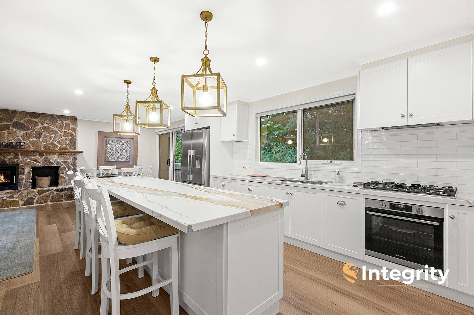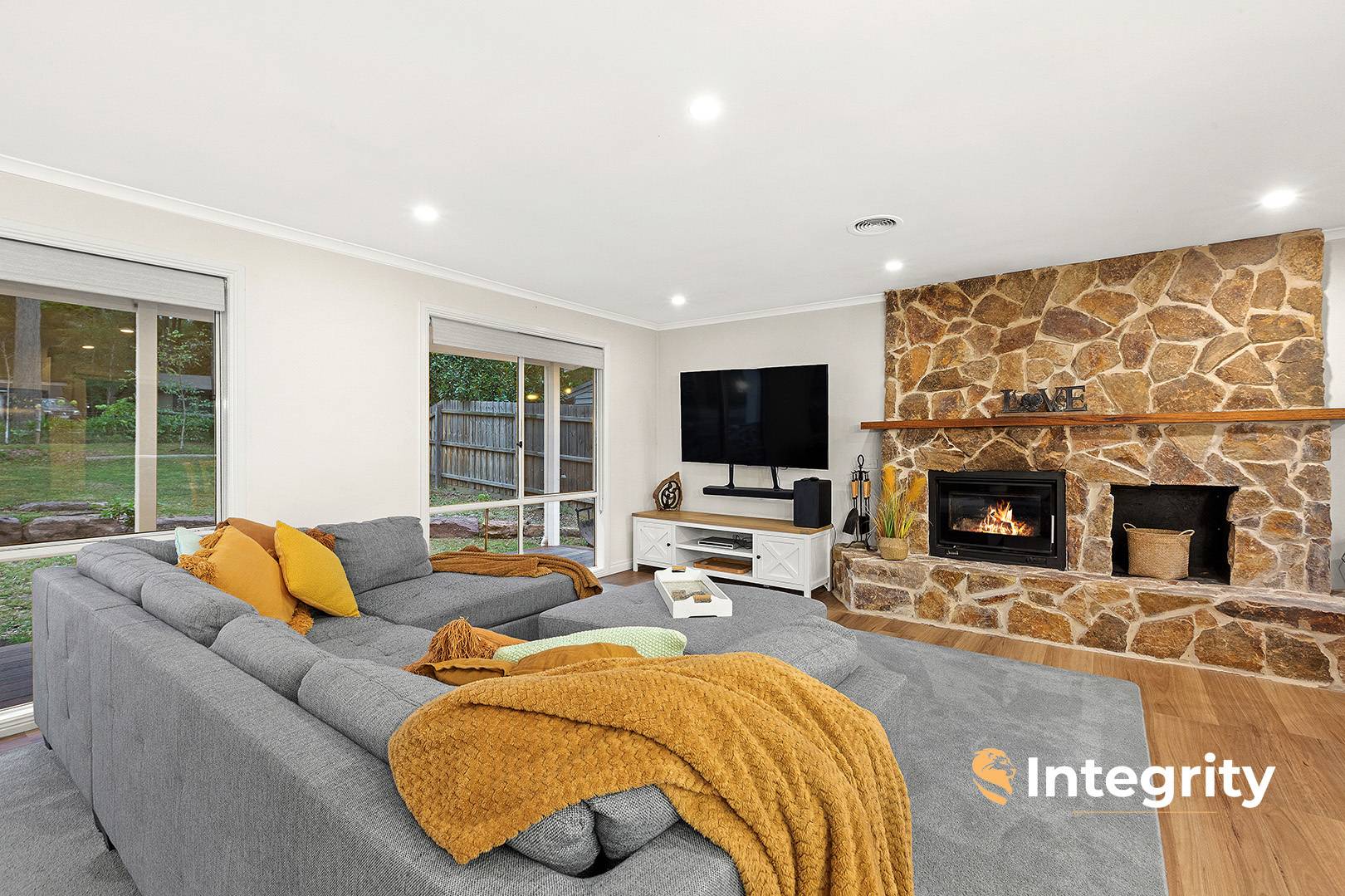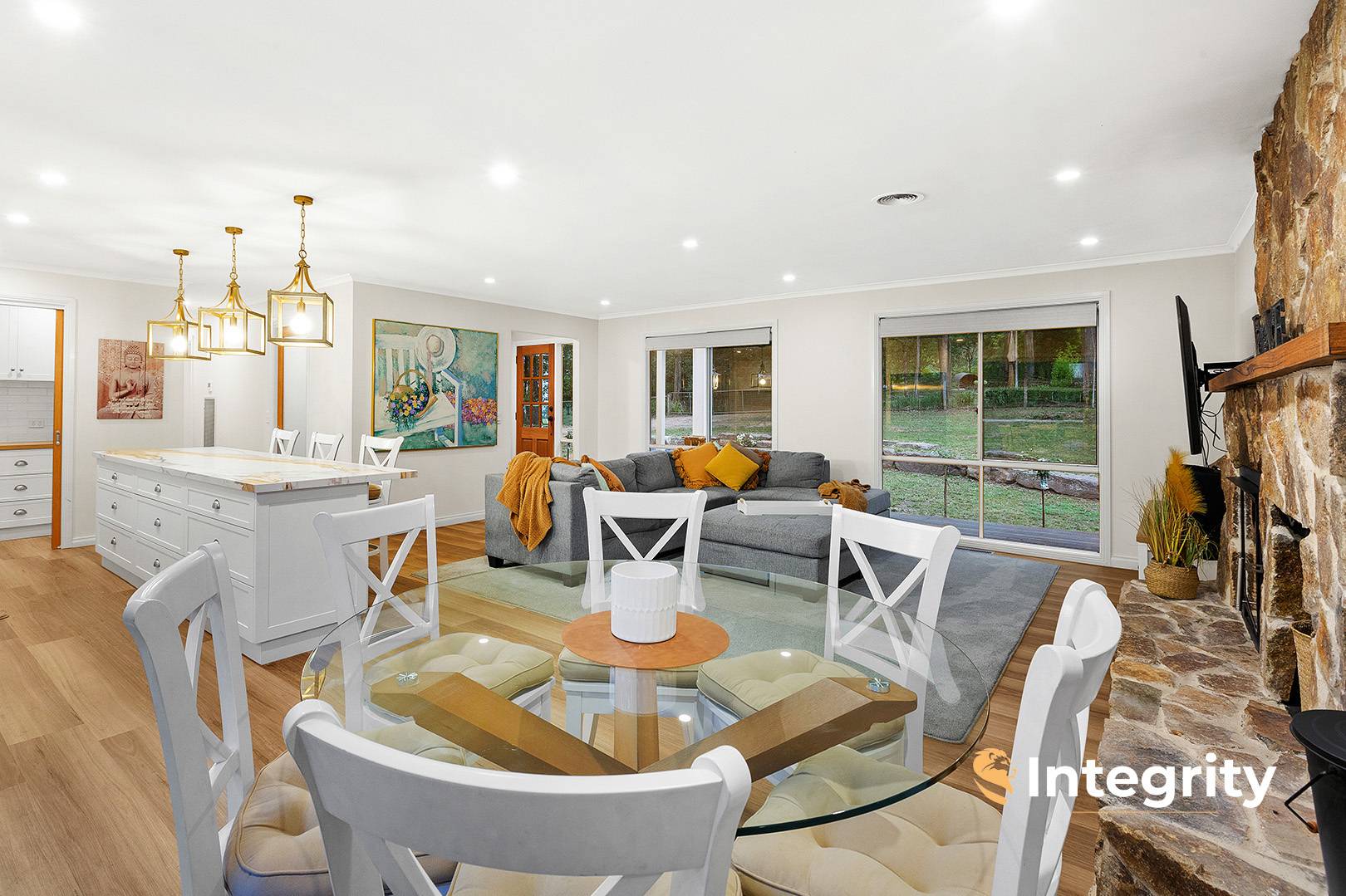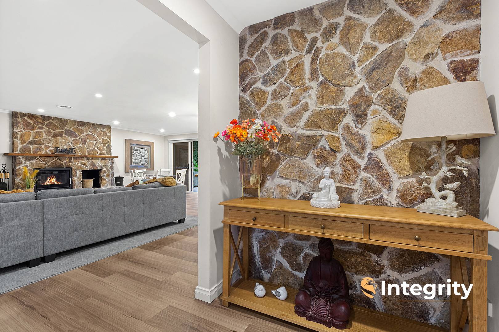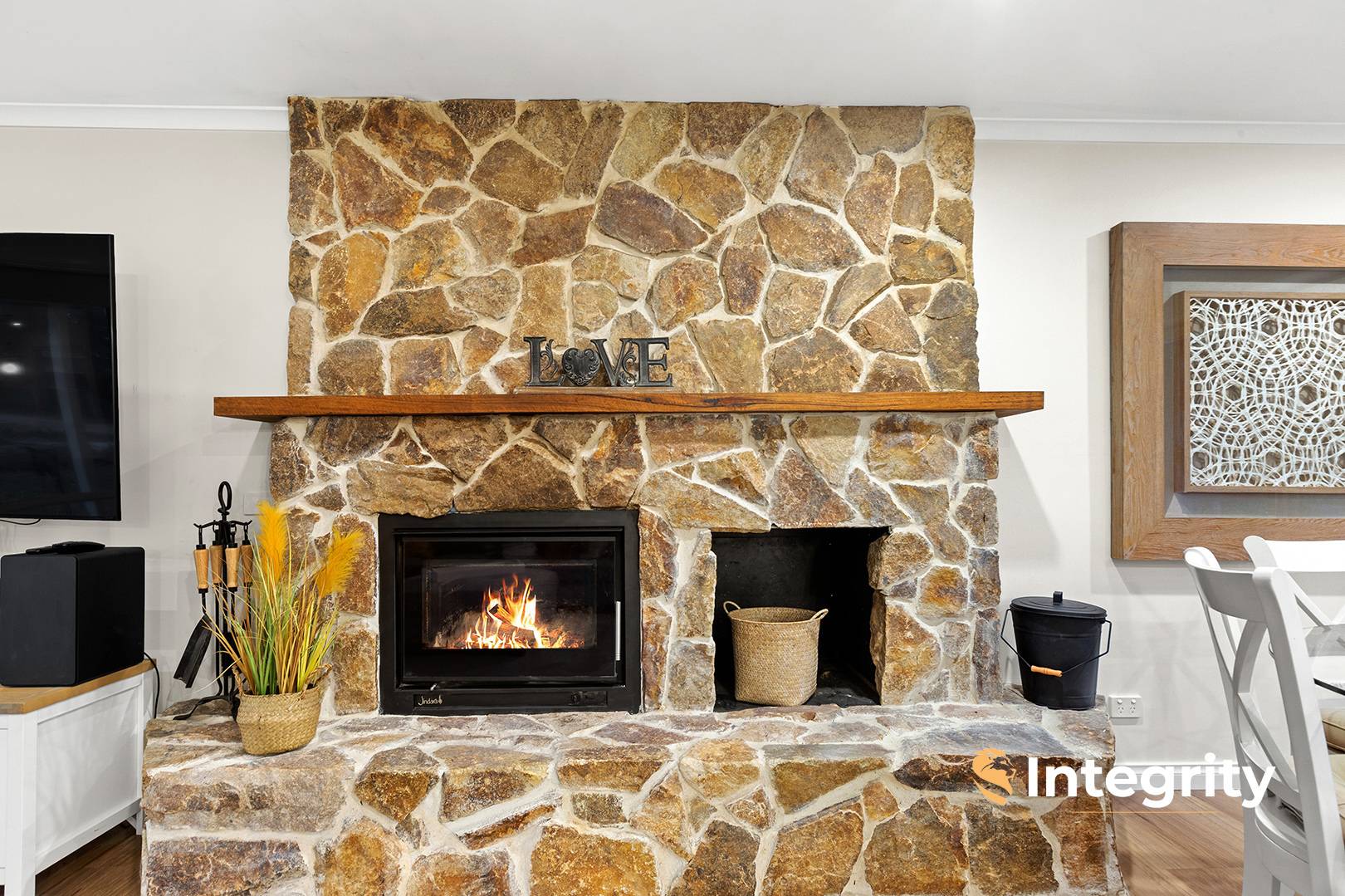Additional highlights include a flagstone hearth with wood heater (a true centrepiece of the home), engineered timber floors, and built-in robes to three bedrooms.