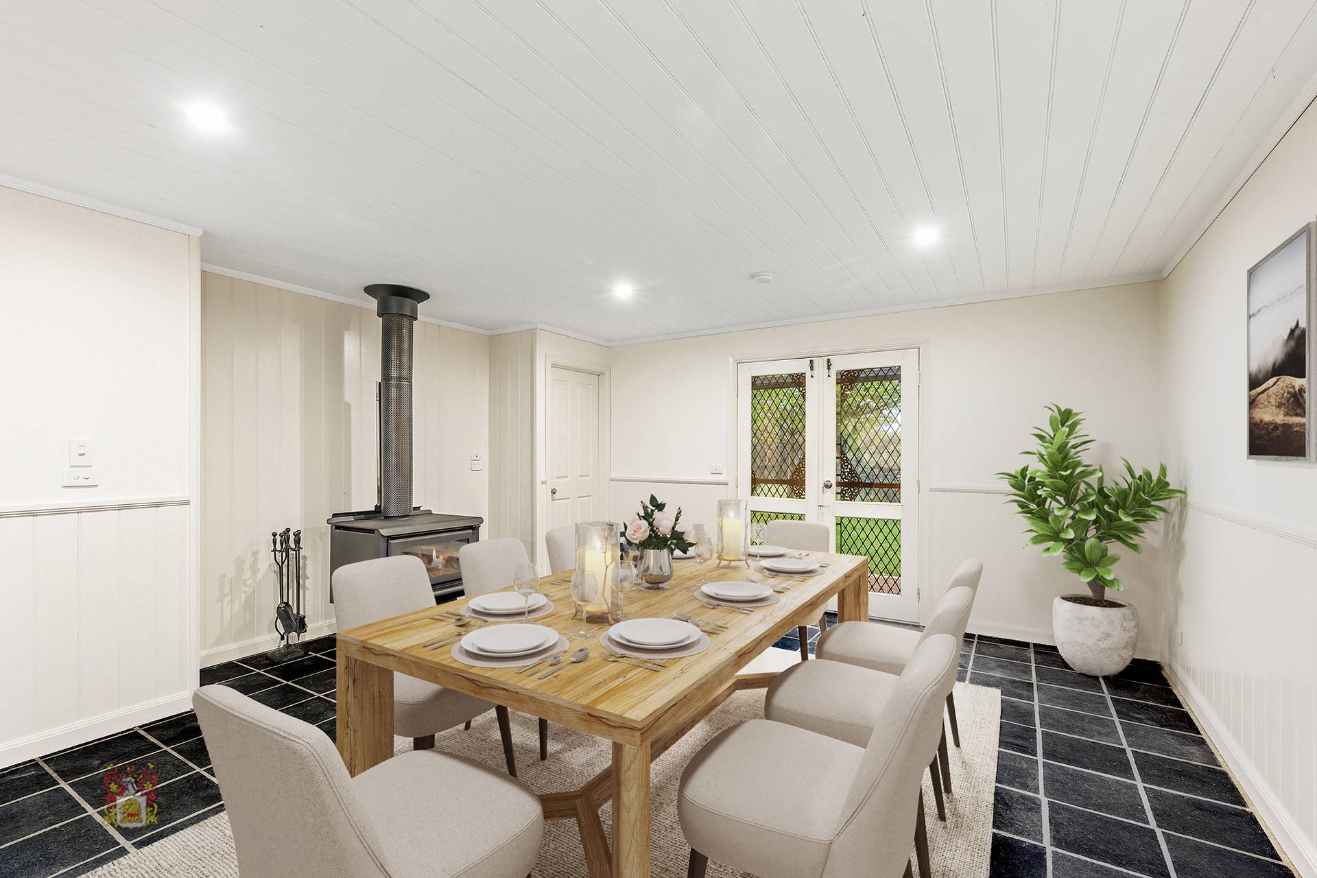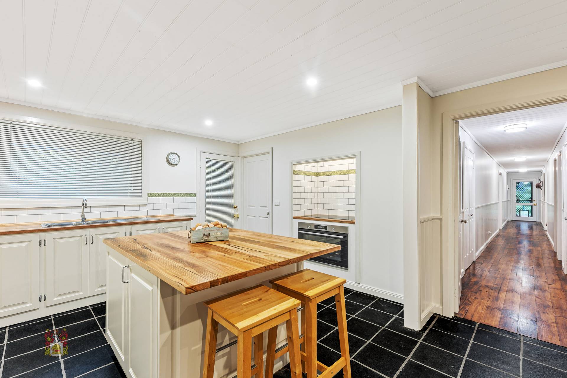 The large floorplan comprises of 4 bedrooms plus study, 3 bathrooms, new kitchen with breakfast bar and dining room, formal lounge and large laundry/mud room. Features include walk through robe and en suite to master bedroom, built-in robes to all other bedrooms, generous linen and storage cupboards, wood heating, timber floorboards. The kitchen includes a top of the range 900m Bosch oven and induction cooktop, large island bench and Bosch dishwasher. The huge walk-in pantry/larder will store everything for the growing family and keeps the fridge neatly hidden from the main area. Other features include French doors to almost every room, classic wainscoting panelling and LED lighting throughout. The home has been meticulously crafted right down to the handmade architraves and custom finishes.